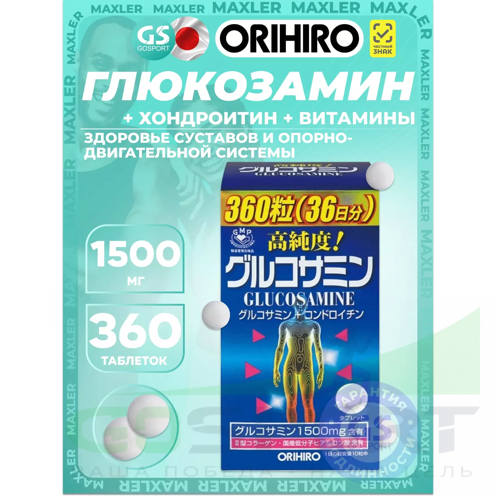 Orihiro Глюкозамин с хондроитином и витаминами 360 таблеток — Здоровье суставов и опорно-двигательной системы
