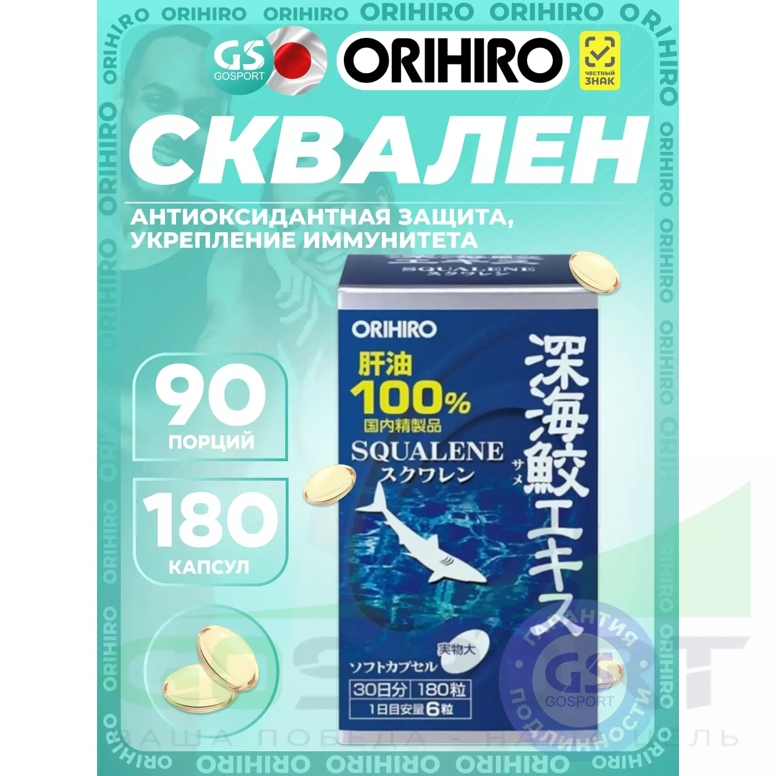 Сквален «ОРИХИРО» из печени акулы 180 капсул