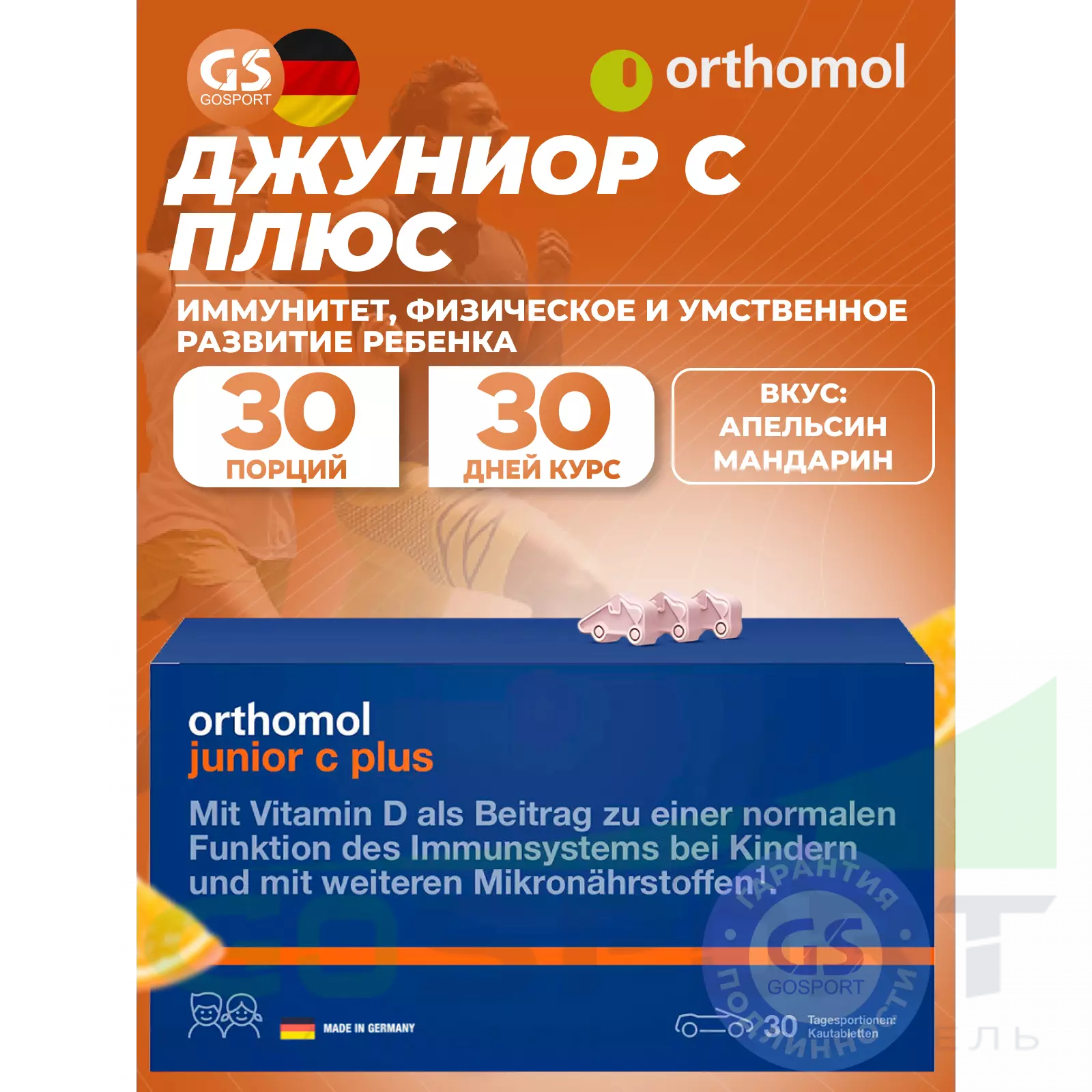 Orthomol junior C plus (жевательные табл.. 30 дн.) – иммунный ортомолекулярный препарат для детей от 4-х лет. Является строительным материалом ферментов, необходимых для обеспечения биохимических и физиологических процессов в организме ребенка. Повышает устойчивость к болезням и неблагоприятным факторам внешней среды.