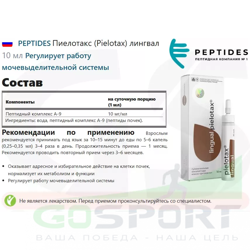 Состав PEPTIDES Пиелотакс (Pielotax) лингвал