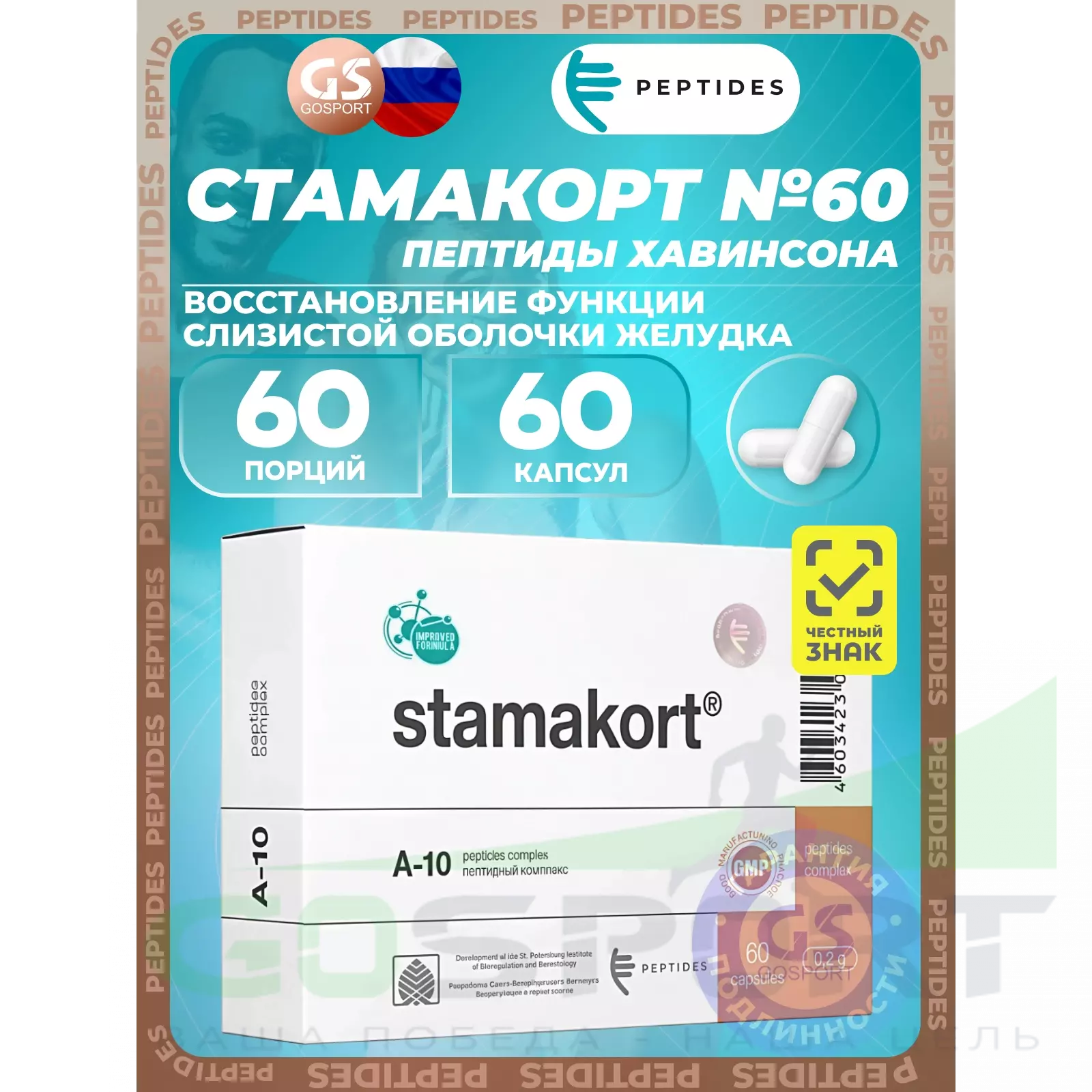 Пептидный комплекс А-10 (пептиды желудка), носитель МКЦ; оболочка капсулы (гидроксипропилметилцеллюлоза, вода очищенная, каррагинан, ацетат калия), антислеживающий агент кальциевая соль стеариновой кислоты.