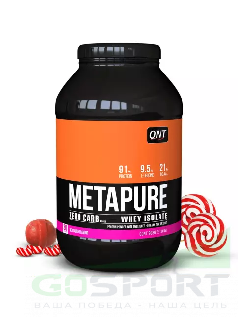 QNT METAPURE ZERO CARB 908 г, Красная конфета — Рост мышц, восстановление и контроль веса
