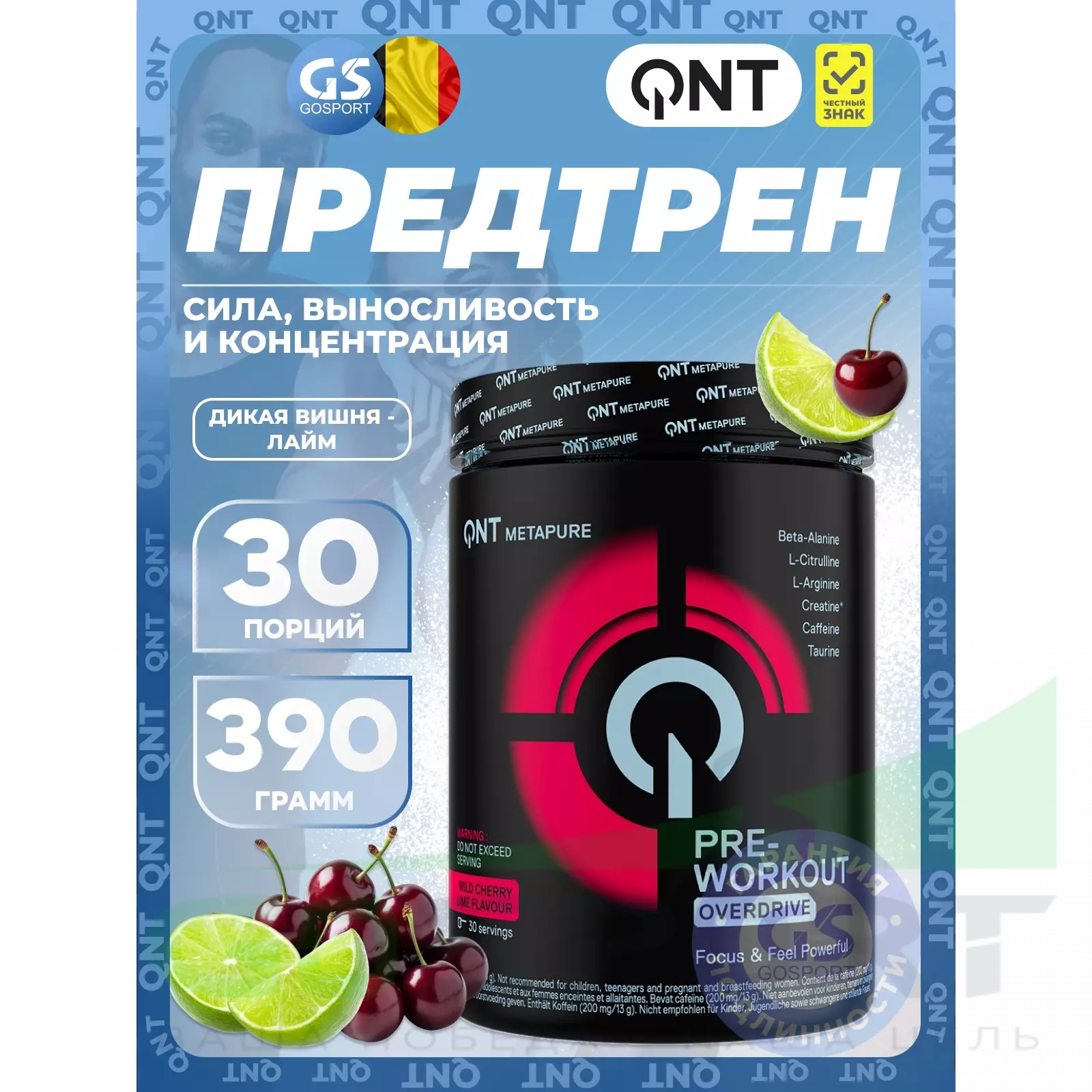 QNT Pre-Workout Overdrive 390 г, Дикая вишня-лайм — Сила, выносливость и рост мышц