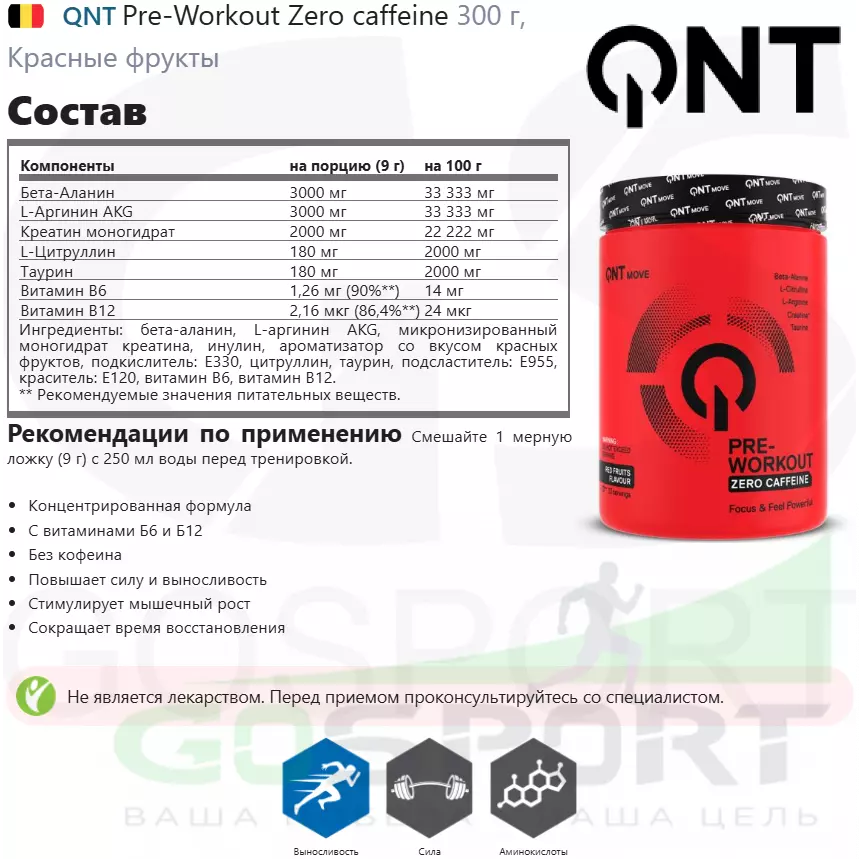 Состав QNT Pre-Workout Zero caffeine