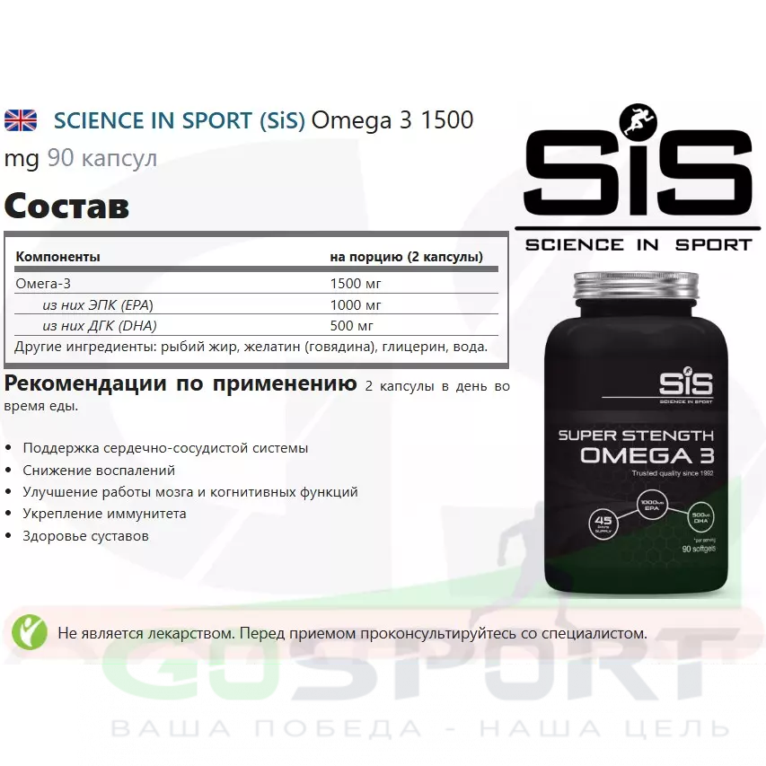 Состав SCIENCE IN SPORT (SiS) Omega 3 1500 mg