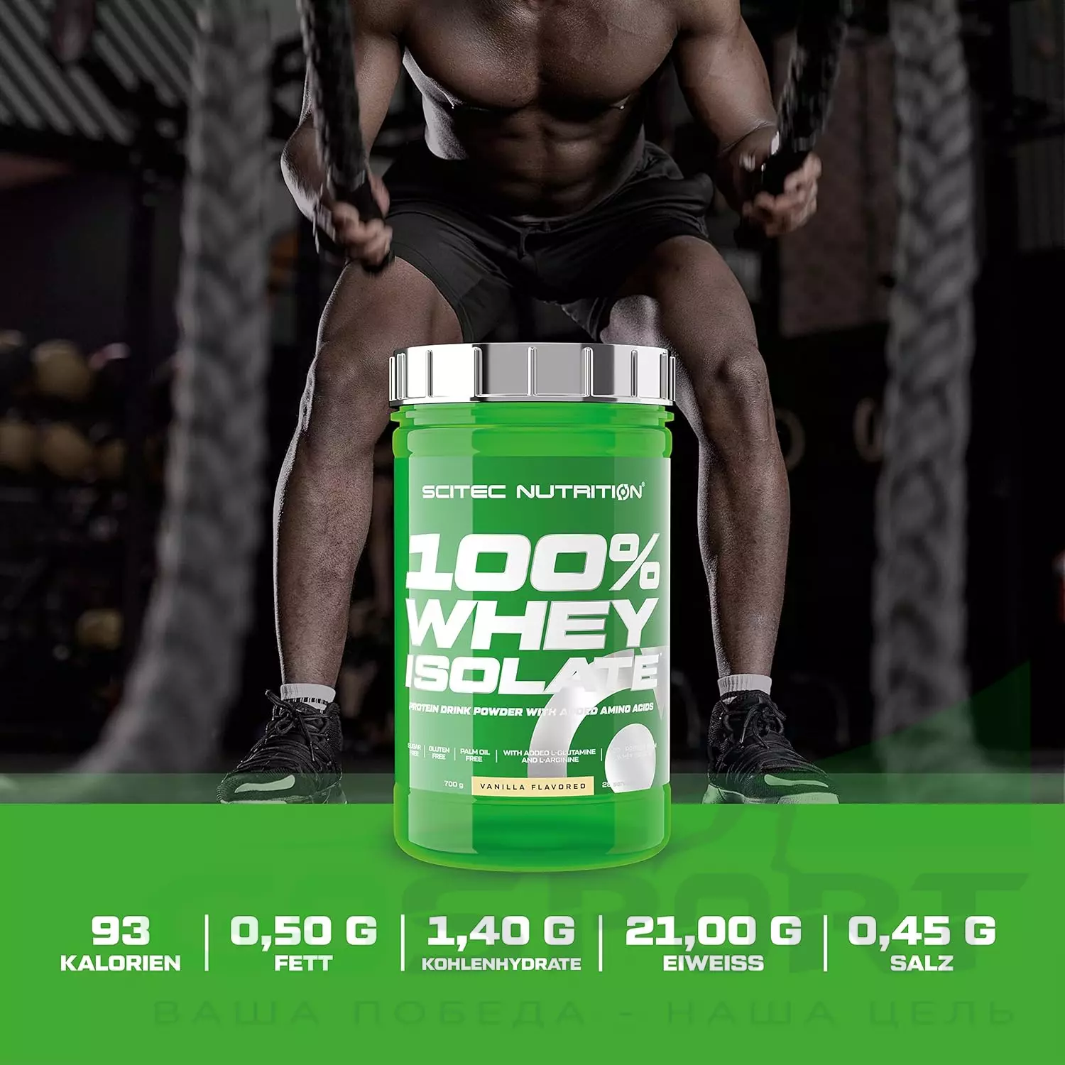 В каждой порции 100% Whey Isolate от Scitec Nutrition содержится 21 г белка из сывороточного изолята и сывороточного гидролизата. Данная формула отличается низким уровнем углеводов, поскольку формы изолята и гидролизата производятся таким образом, что в процессе из исходного сырья (сывороточного белка) удаляются почти все углеводы и жир. За счет предельно низкого количества углеводов, в том числе лактозы, данный протеин можно использовать во время сушки или диеты, а также тем, кто не переносит лактозу. Используя его сразу после тренировки, вы сможете эффективнее восстанавливаться, а также предупредите распад мышечной массы.