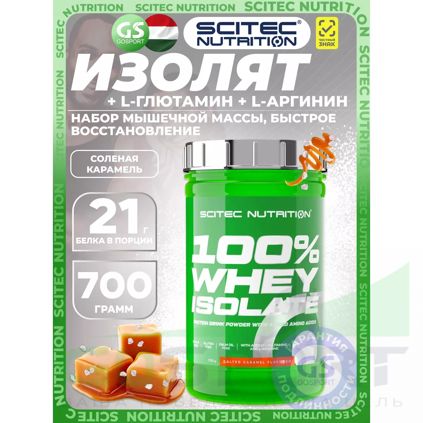 Scitec Nutrition 100% Whey Isolate 700 г, Соленая карамель — Набор мышечной массы, быстрое восстановление