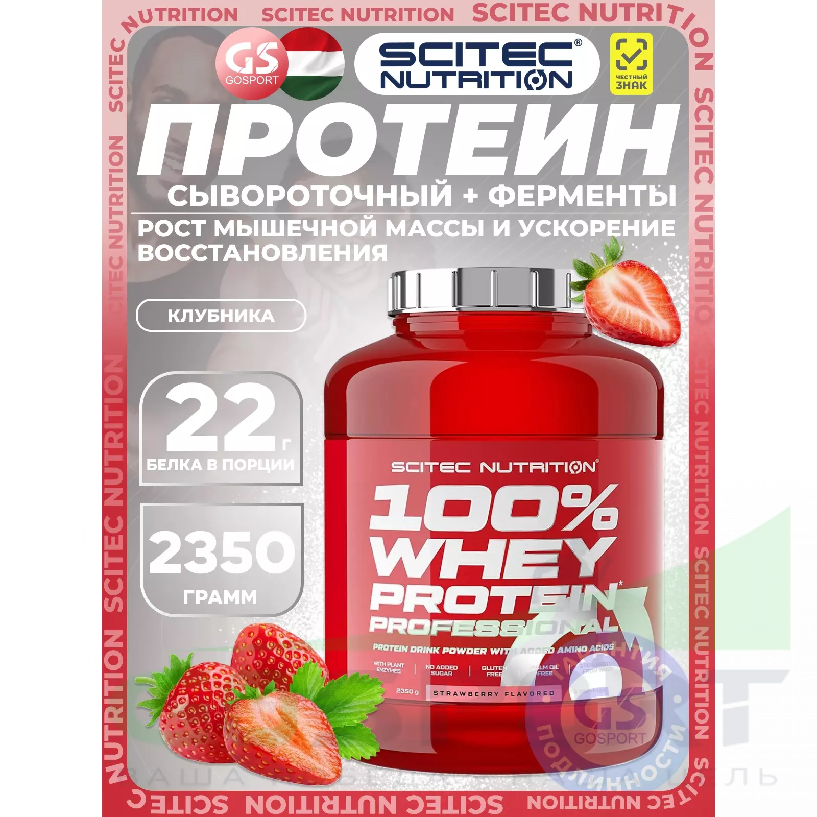Scitec Nutrition 100% Whey Protein Professional 2350 г, Клубника — Рост мышечной массы и ускорение восстановления