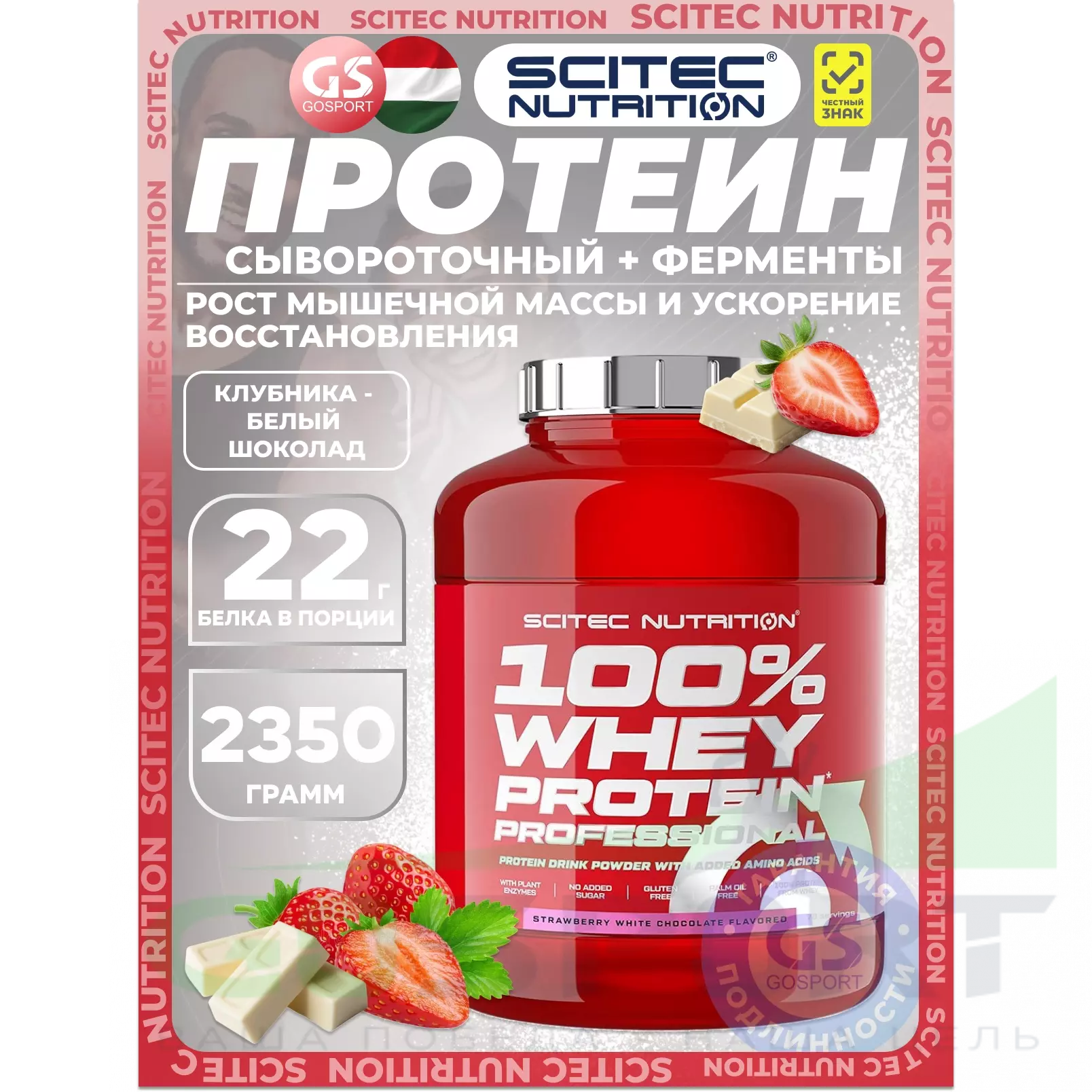 Scitec Nutrition 100% Whey Protein Professional 2350 г, Клубника - Белый шоколад — Рост мышечной массы и ускорение восстановления