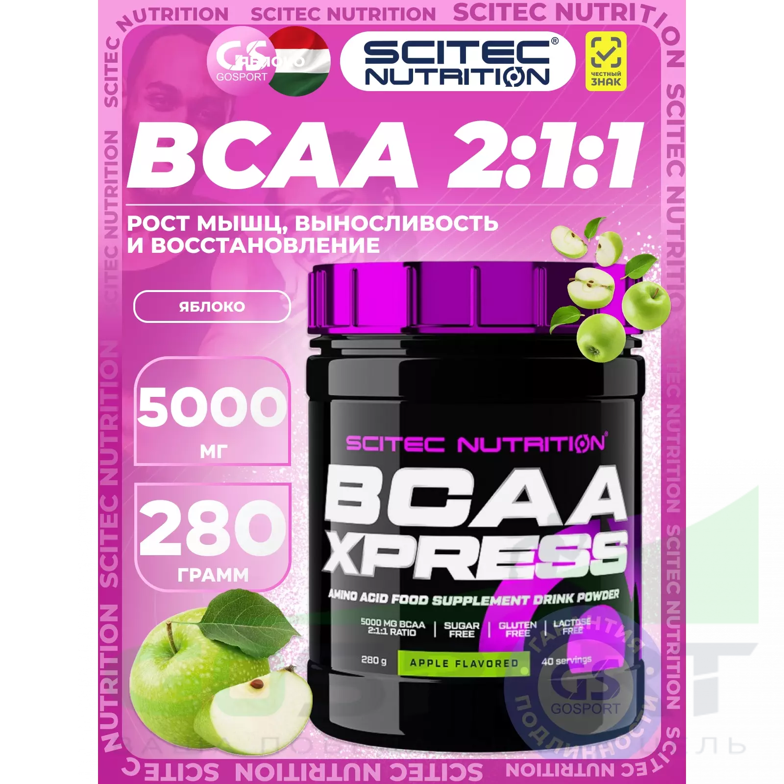 Scitec Nutrition BCAA Xpress 2:1:1 280 г, Яблоко — Рост мышц, выносливость и восстановление