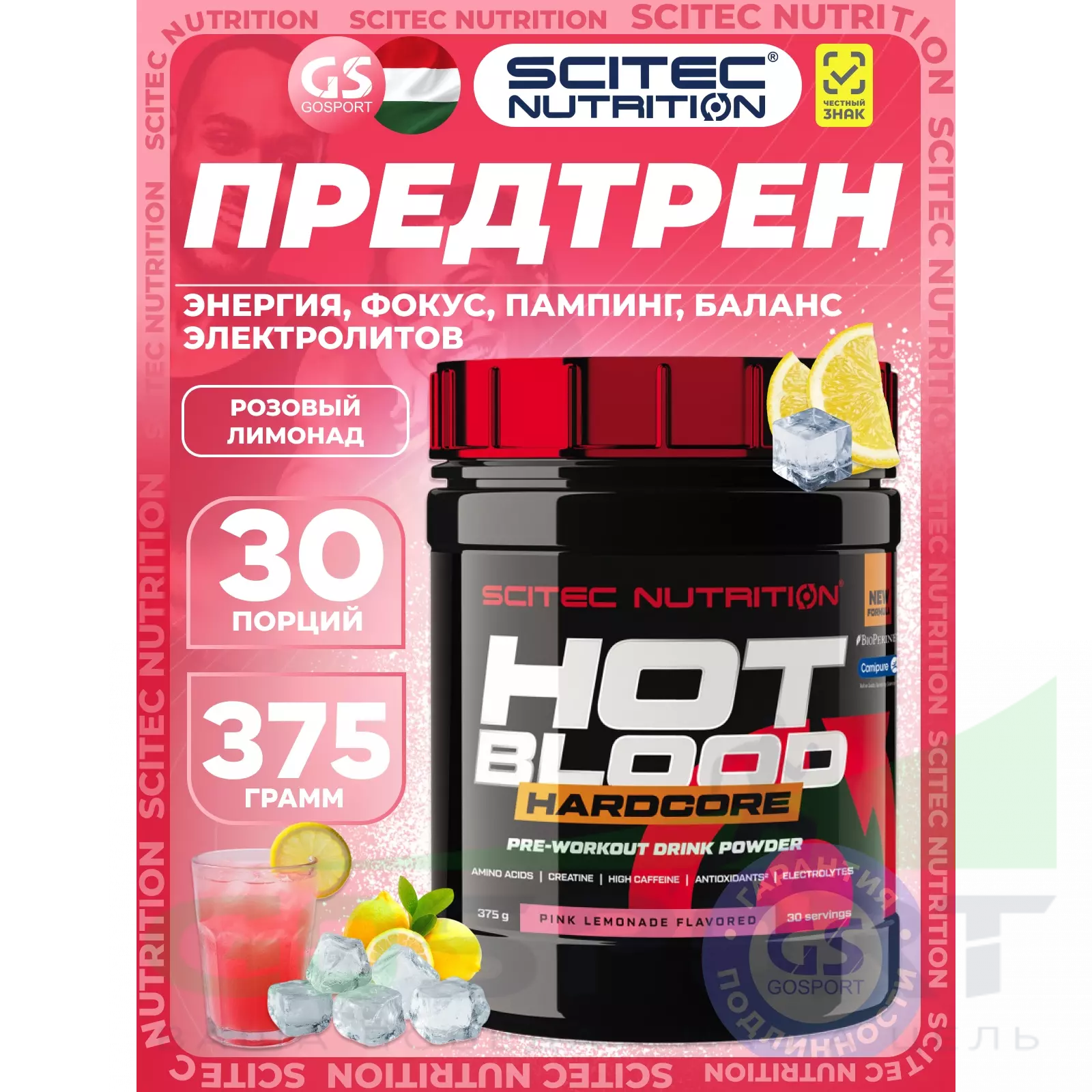 Scitec Nutrition Hot Blood Hardcore 375 г, Розовый лимонад — Энергия, фокус, пампинг, баланс электролитов
