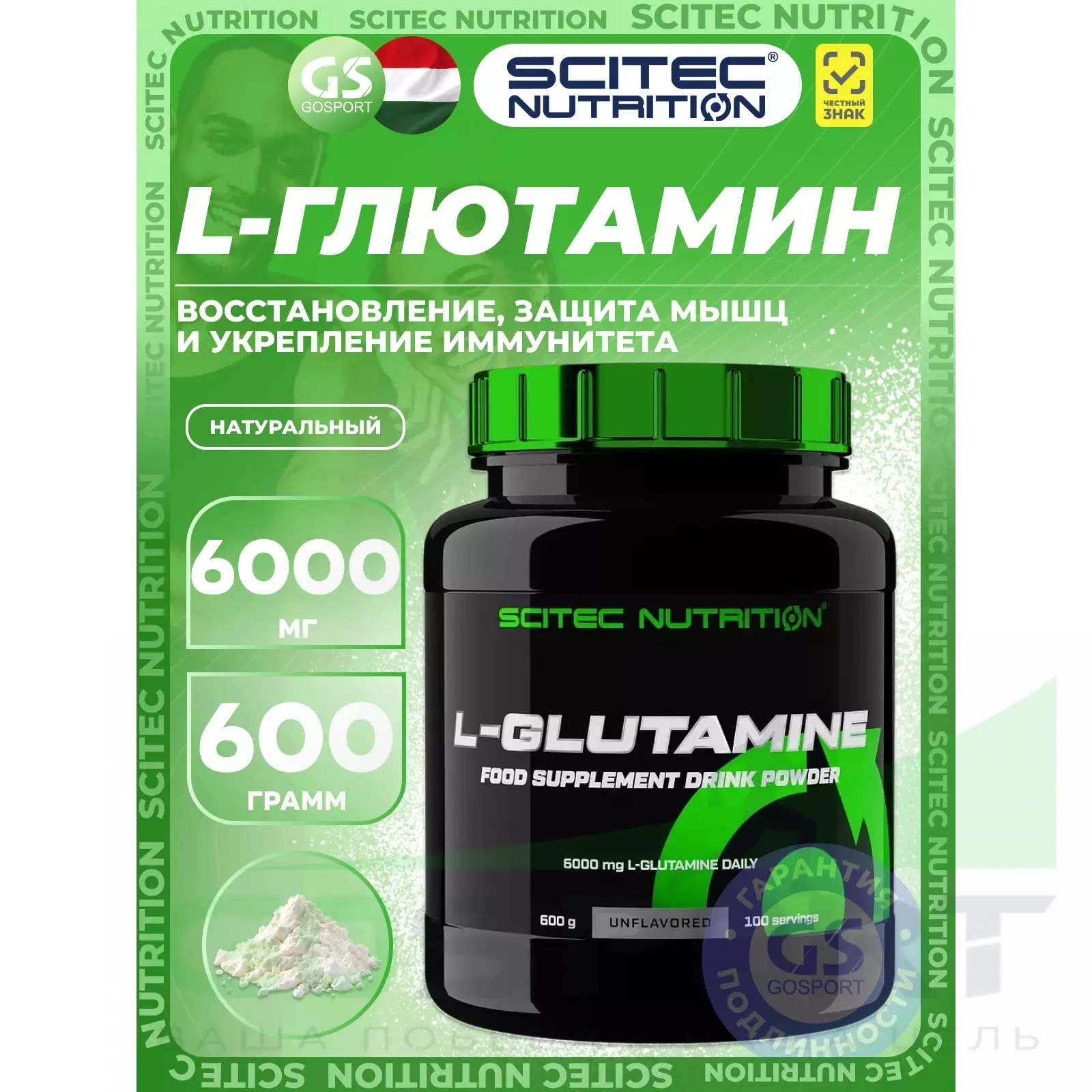 Scitec Nutrition L-Glutamine 6000 mg 600 г, Натуральный — Восстановление, защита мышц и укрепление иммунитета