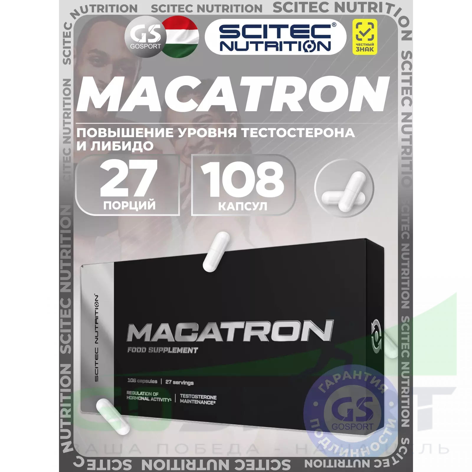 MACATRON — это ультрасовременная, комплексная матрица для оптимизации уровня тестостерона, эстрогена и либидо, содержащая 13 тщательно отобранных эффективных ингредиентов!