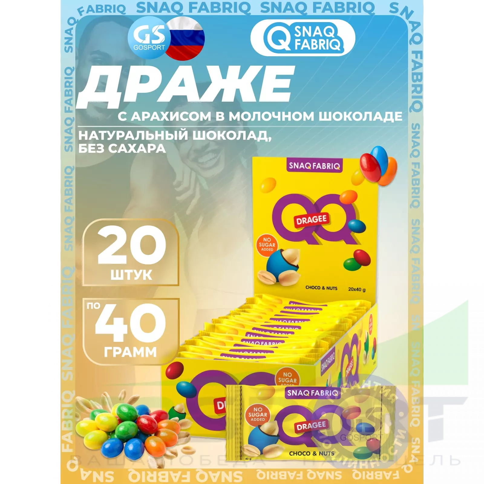 SNAQ FABRIQ Драже QQ с арахисом и молочным шоколадом покрытое разноцветной глазурью, без сахара 20x40 г
