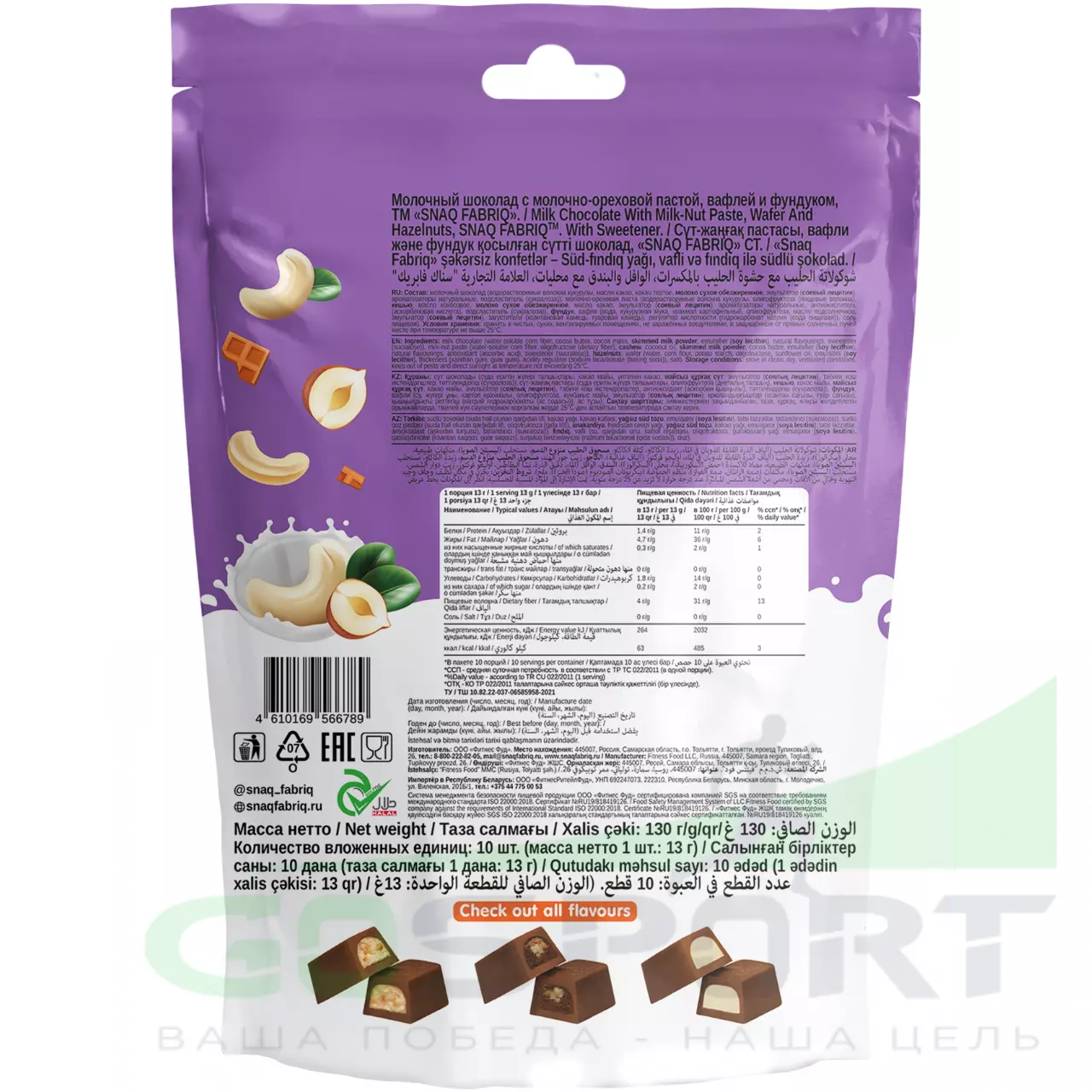 SNAQ FABRIQ Milky 130 г, Молочно-ореховая паста с вафлей и фундуком — Натуральный нежный шоколад