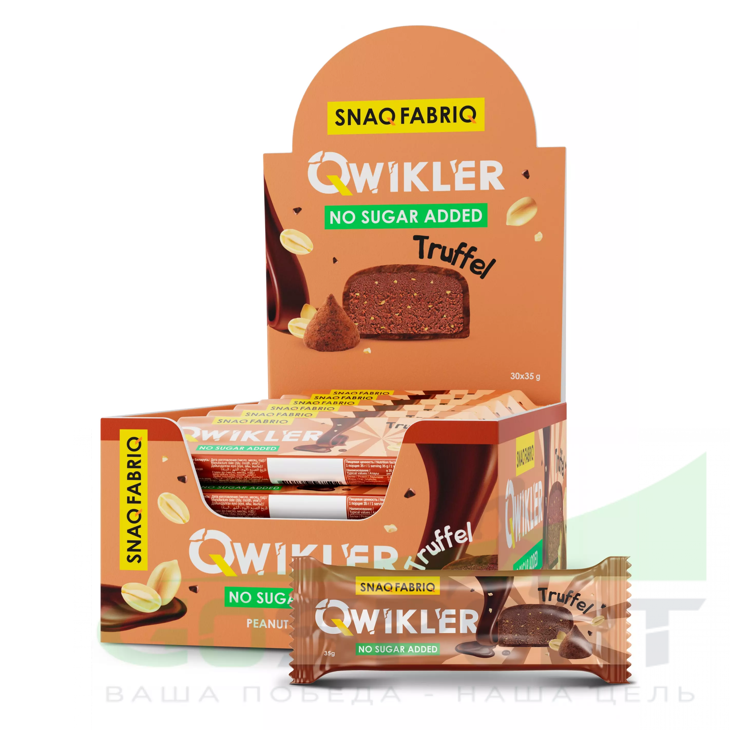 SNAQ FABRIQ Шоколадный батончик без сахара "QWIKLER" (Квиклер) 30 x 35 г, Трюфель — Полезный перекус и поддержка диеты