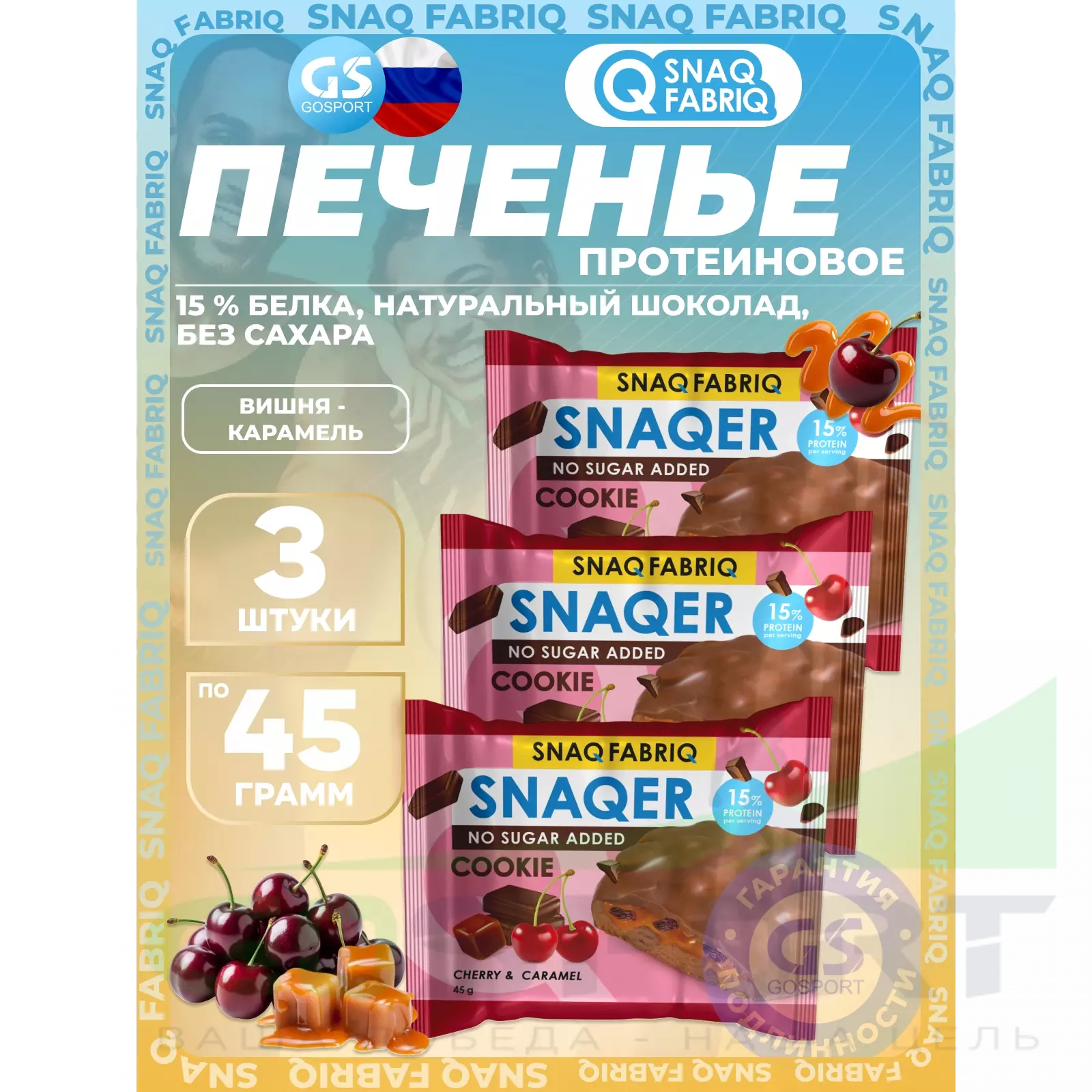 SNAQ FABRIQ Печенье SNAQER 3 x 45 г, Вишня - карамель — Полезный и питательный перекус