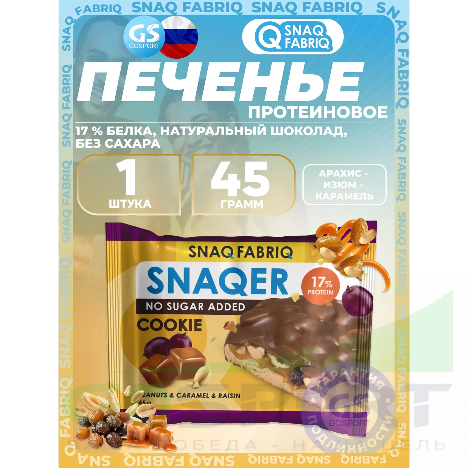 SNAQ FABRIQ Печенье SNAQER 45 г, Арахис - изюм - карамель — Полезный и питательный перекус