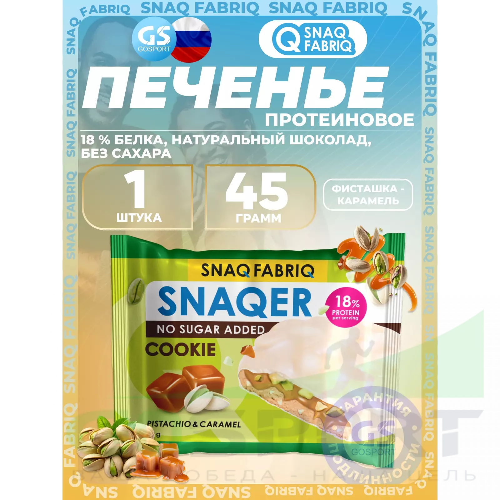SNAQ FABRIQ Печенье SNAQER 45 г, Фисташка-карамель — Полезный и питательный перекус