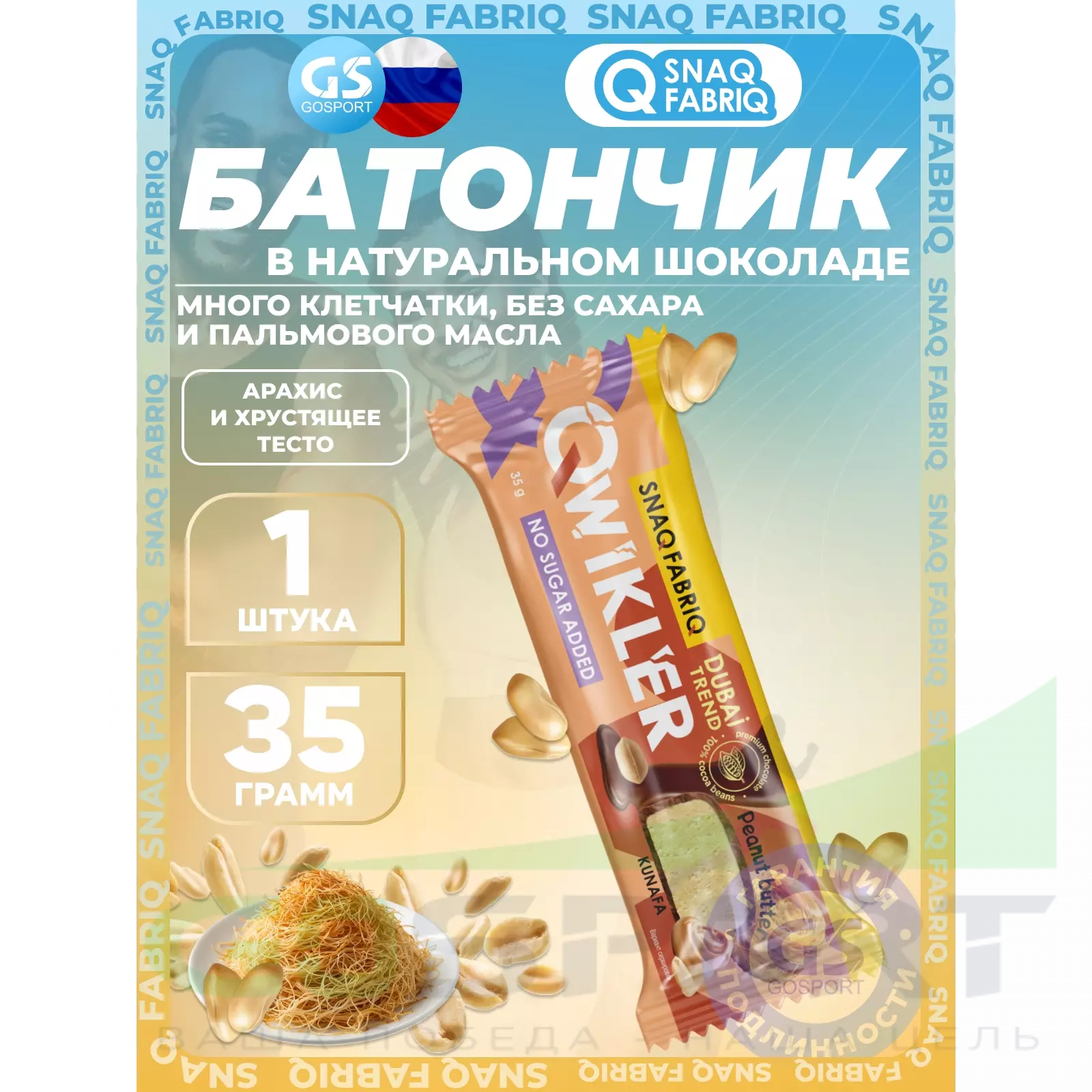 SNAQ FABRIQ QWIKLER (Квиклер) без сахара 35 г, Арахис и хрустящее тесто — Полезный перекус и поддержка диеты