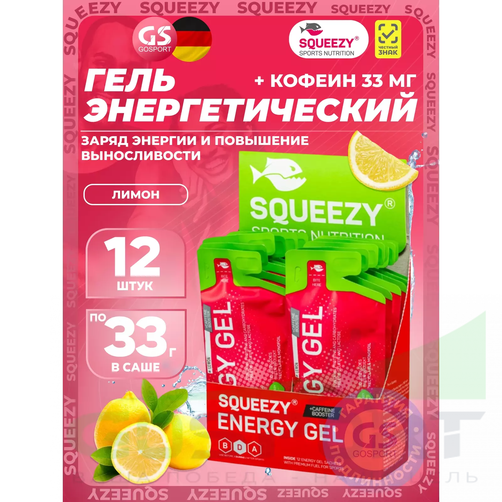 SQUEEZY ENERGY SUPER GEL 33 mg caffeine 33 г x 12 саше, Лимон — Заряд энергии и повышение выносливости