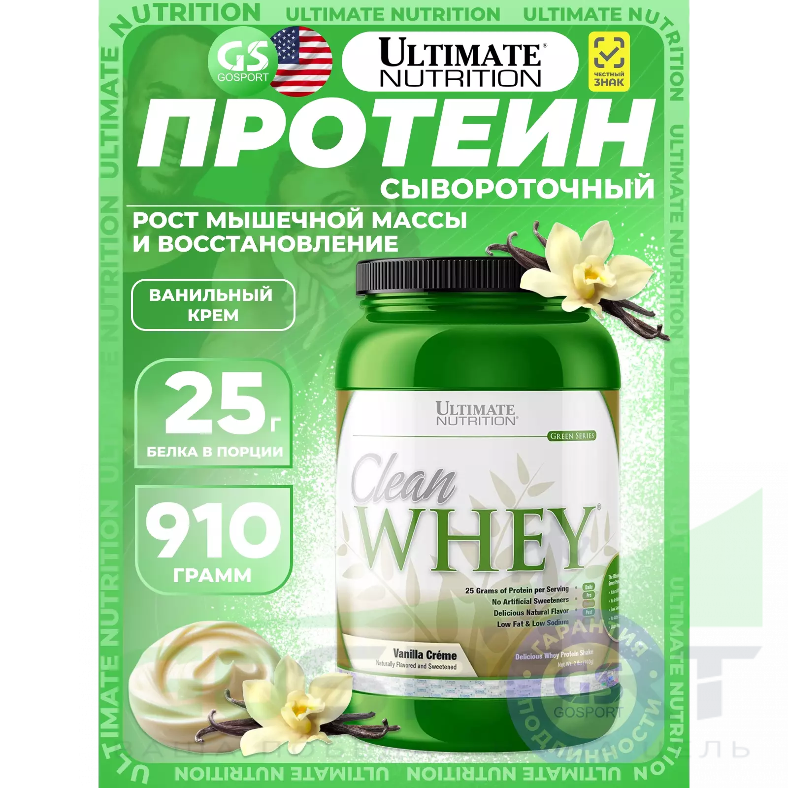 Ученые из компании Ultimate Nutrition разработали элитный протеин для самых требовательных клиентов, который имеет превосходный вкус. Clean Whey от Ultimate Nutrition – это естественным образом подслащенный сывороточный протеин с превосходным вкусом, с натуральными ароматизаторами и без добавления сахара. Clean Whey содержит 25 г высококачественного сывороточного концентрата, сывороточного изолята и сывороточного гидролизата в каждой порции. Клеан Вей не содержит искусственных ароматизаторов, искусственных красителей и искусственных подсластителей. Ultimate Nutrition Clean Whey является доказательством того, что естественным образом ароматизированные и подслащенные продукты не обязательно должны иметь плохой вкус, чтобы быть полезными для вас!