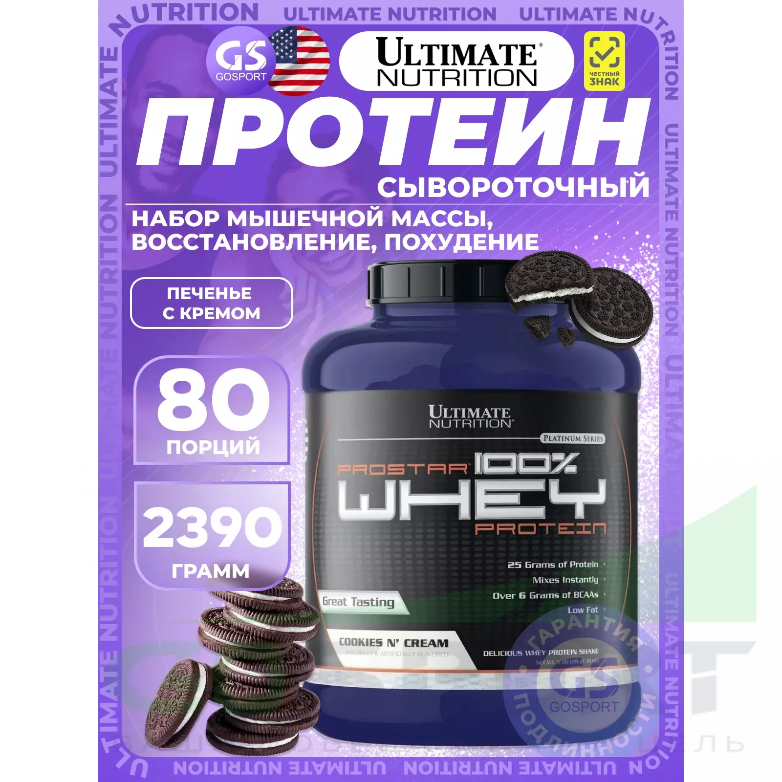 Для удовлетворения потребностей спортсменов компания Ultimate Nutrition разработала продукт 100% Prostar Whey Protein с содержанием всего перечня заменимых и незаменимых аминокислот, необходимых для строительства вашей мускулатуры как при длительных, так и непродолжительных интенсивных нагрузках. 100% Prostar Whey Protein – это уникальное сочетание всех питательных веществ, включая фактор иммунного роста, получаемый с использованием специальных процессов из сывороточного белка. Поскольку упражнения могут нанести урон вашей иммунной систем, 100% Prostar Whey Protein выбор тех, кто придерживается активного образа жизни, независимо являетесь ли вы любителем или профессионалом.