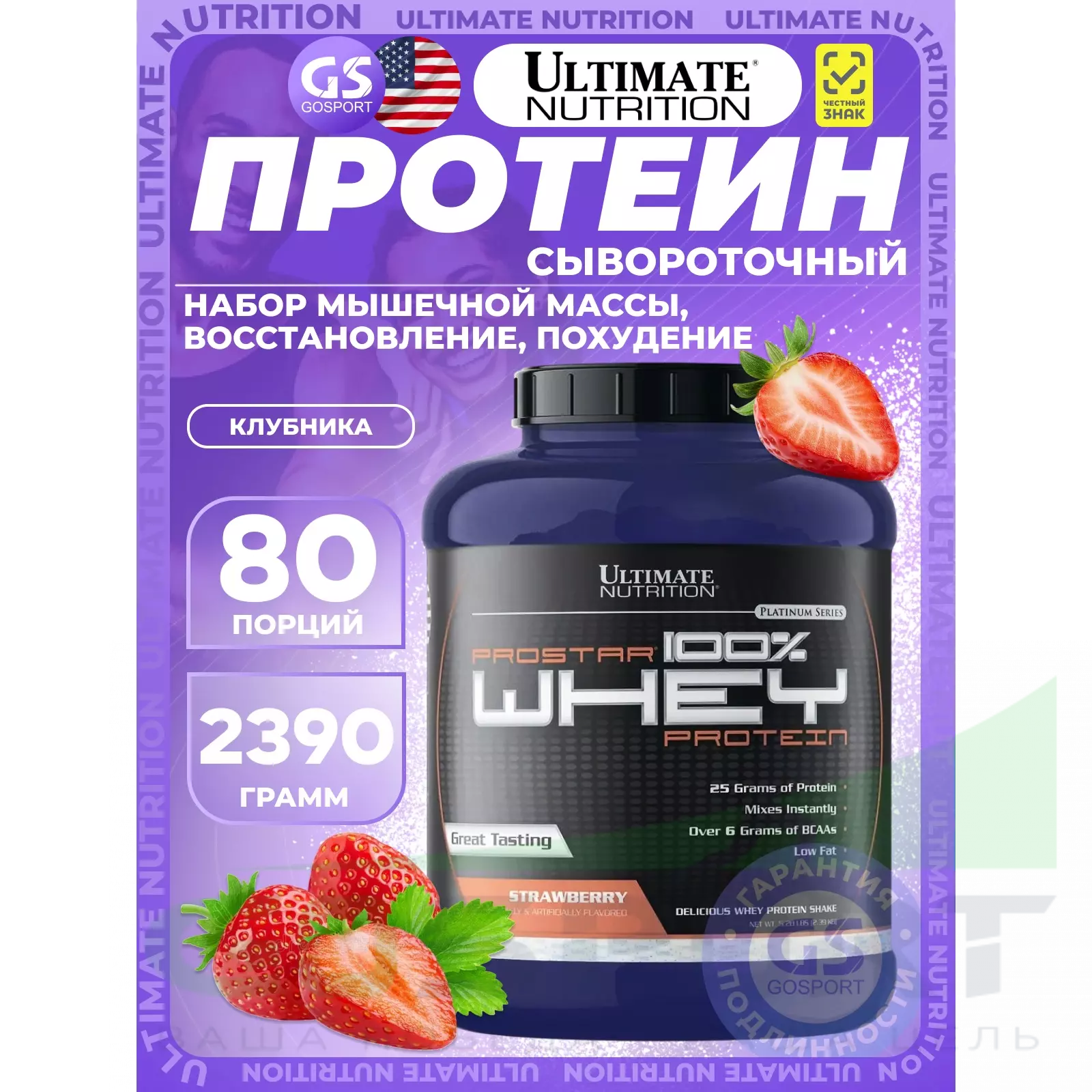 Для удовлетворения потребностей спортсменов компания Ultimate Nutrition разработала продукт 100% Prostar Whey Protein с содержанием всего перечня заменимых и незаменимых аминокислот, необходимых для строительства вашей мускулатуры как при длительных, так и непродолжительных интенсивных нагрузках. 100% Prostar Whey Protein – это уникальное сочетание всех питательных веществ, включая фактор иммунного роста, получаемый с использованием специальных процессов из сывороточного белка. Поскольку упражнения могут нанести урон вашей иммунной систем, 100% Prostar Whey Protein выбор тех, кто придерживается активного образа жизни, независимо являетесь ли вы любителем или профессионалом.