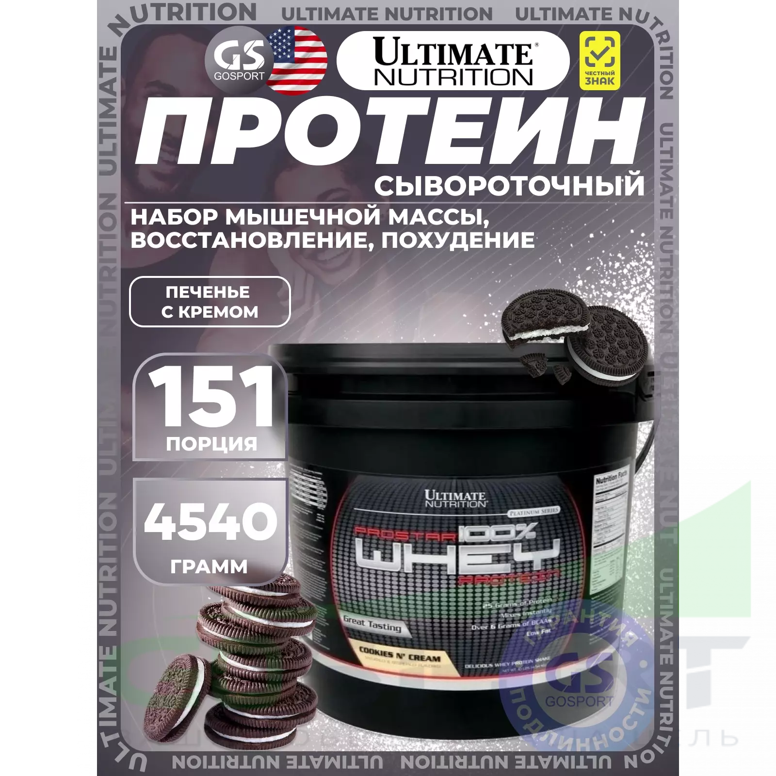 Для удовлетворения потребностей спортсменов компания Ultimate Nutrition разработала продукт 100% Prostar Whey Protein с содержанием всего перечня заменимых и незаменимых аминокислот, необходимых для строительства вашей мускулатуры как при длительных, так и непродолжительных интенсивных нагрузках. 100% Prostar Whey Protein – это уникальное сочетание всех питательных веществ, включая фактор иммунного роста, получаемый с использованием специальных процессов из сывороточного белка. Поскольку упражнения могут нанести урон вашей иммунной систем, 100% Prostar Whey Protein выбор тех, кто придерживается активного образа жизни, независимо являетесь ли вы любителем или профессионалом.