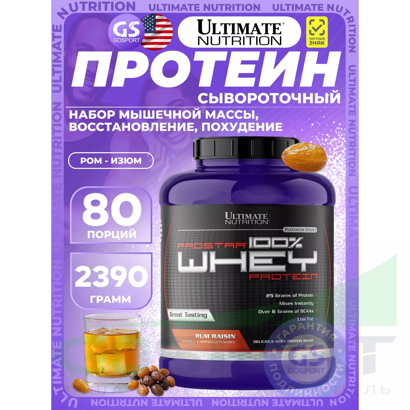 Для удовлетворения потребностей спортсменов компания Ultimate Nutrition разработала продукт 100% Prostar Whey Protein с содержанием всего перечня заменимых и незаменимых аминокислот, необходимых для строительства вашей мускулатуры как при длительных, так и непродолжительных интенсивных нагрузках. 100% Prostar Whey Protein – это уникальное сочетание всех питательных веществ, включая фактор иммунного роста, получаемый с использованием специальных процессов из сывороточного белка. Поскольку упражнения могут нанести урон вашей иммунной систем, 100% Prostar Whey Protein выбор тех, кто придерживается активного образа жизни, независимо являетесь ли вы любителем или профессионалом.