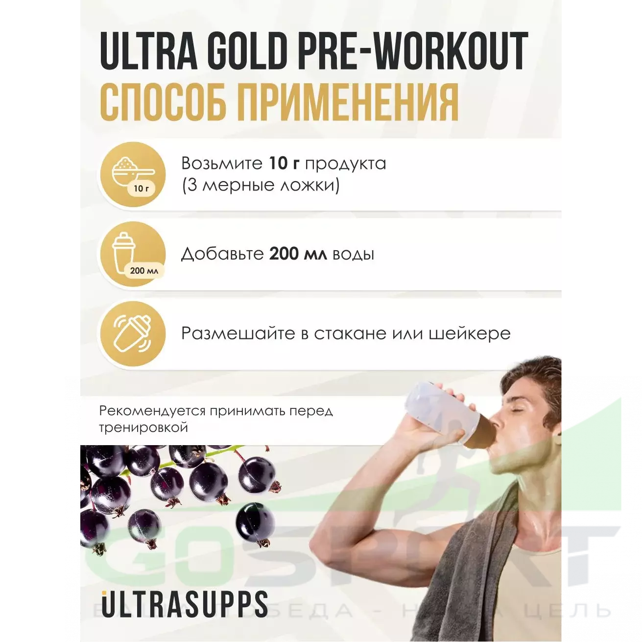 UltraSupps Pre-workout 200 г, Черная смородина — Энергия, выносливость, концентрация, пампинг