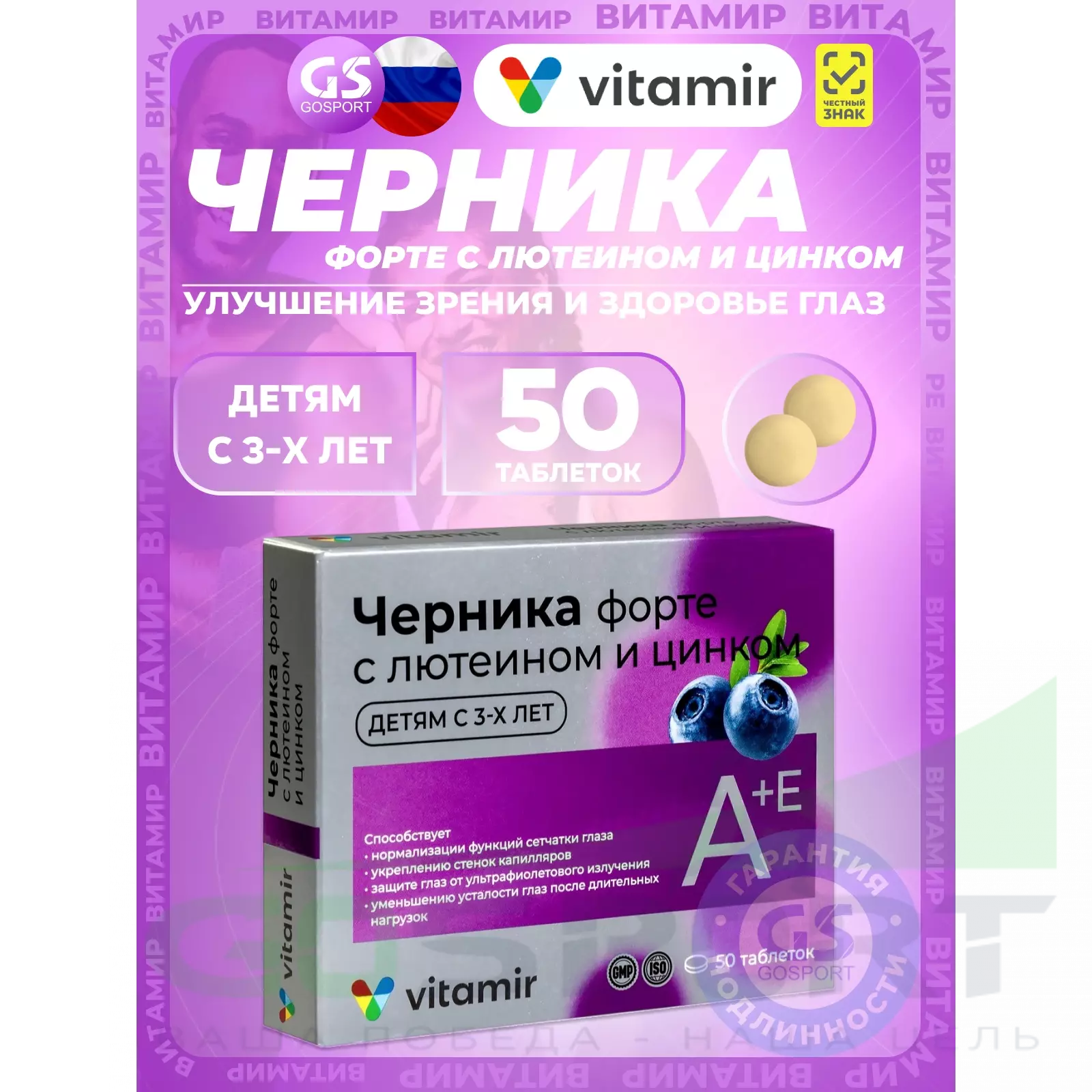 Описание ВИТАМИР Черника форте с лютеином и цинком