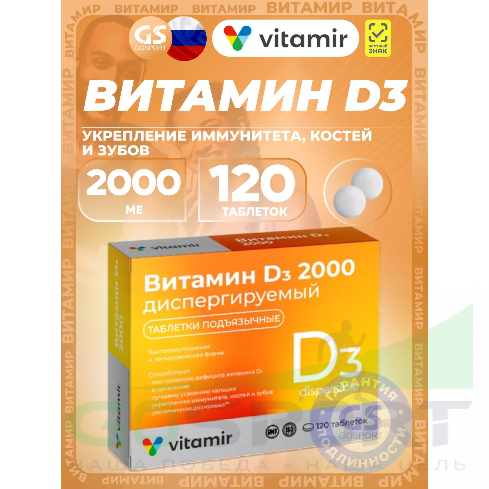 «Витамин D3 2000 диспергируемый» — дополнительный источник витамина D3 в форме подъязычных таблеток, которые быстро растворяются и легко усваиваются организмом.