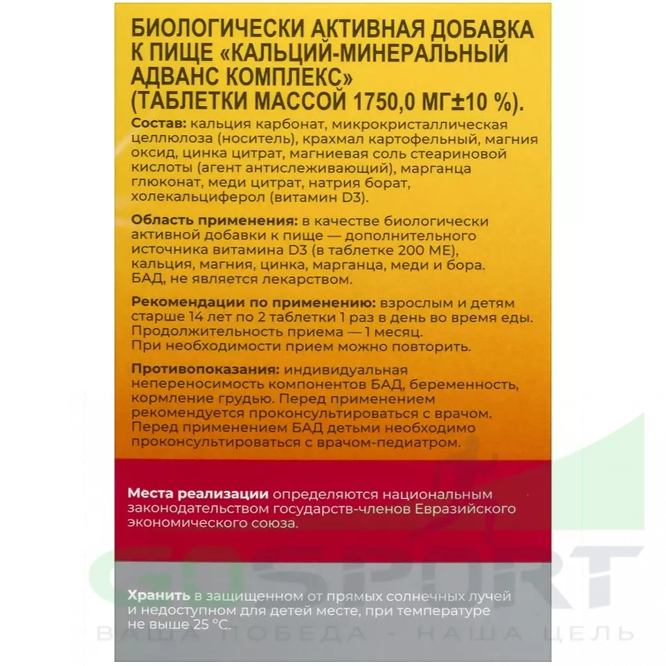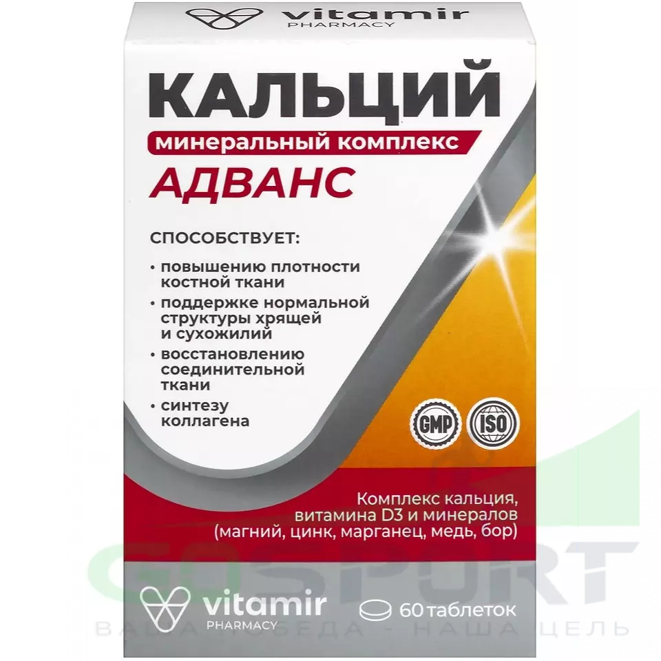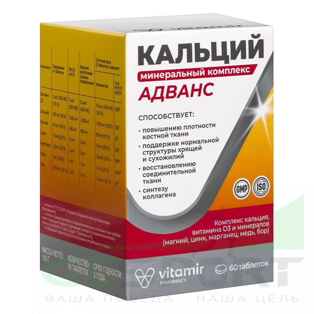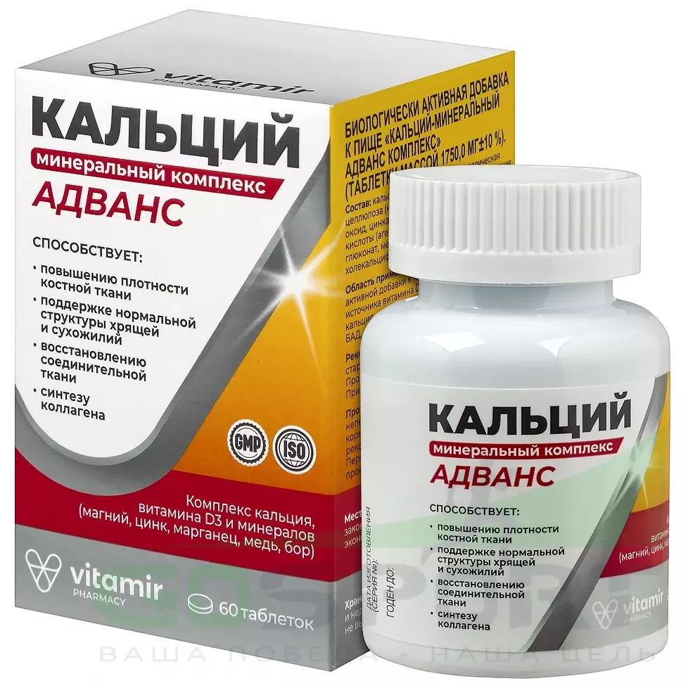 ВИТАМИР Кальций минеральный Адванс комплекс 60 таблеток — Укрепление костей, поддержка хрящей и сухожилий