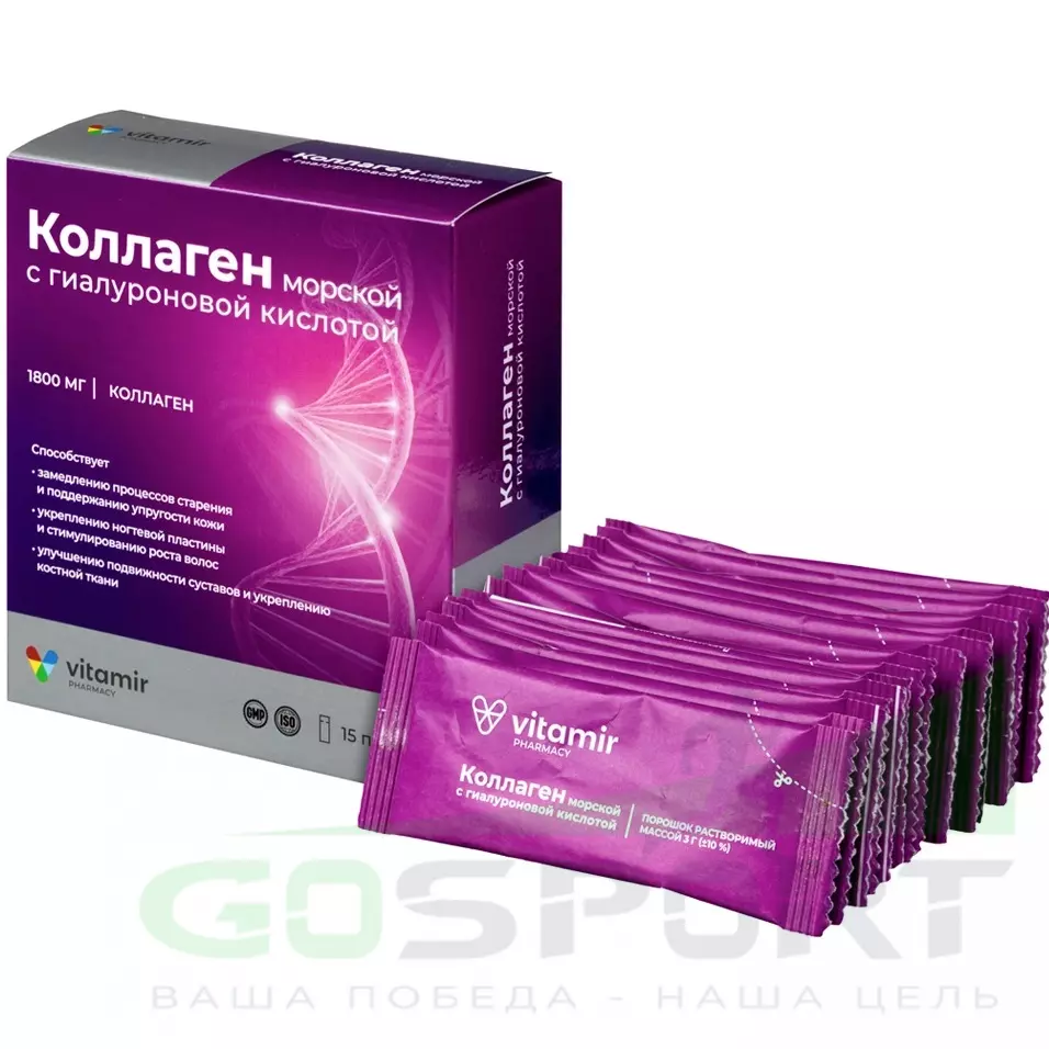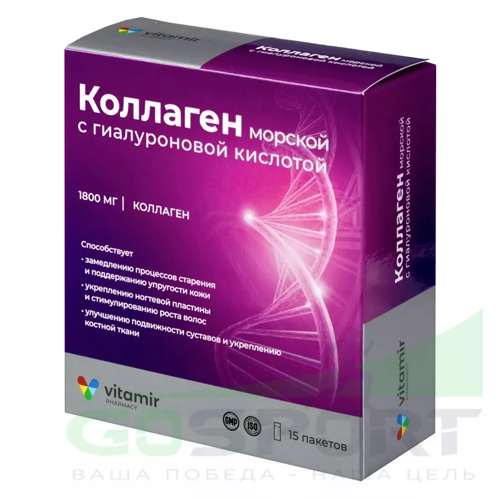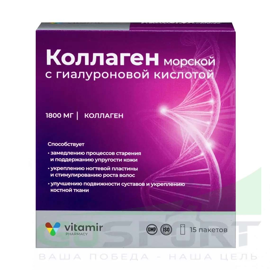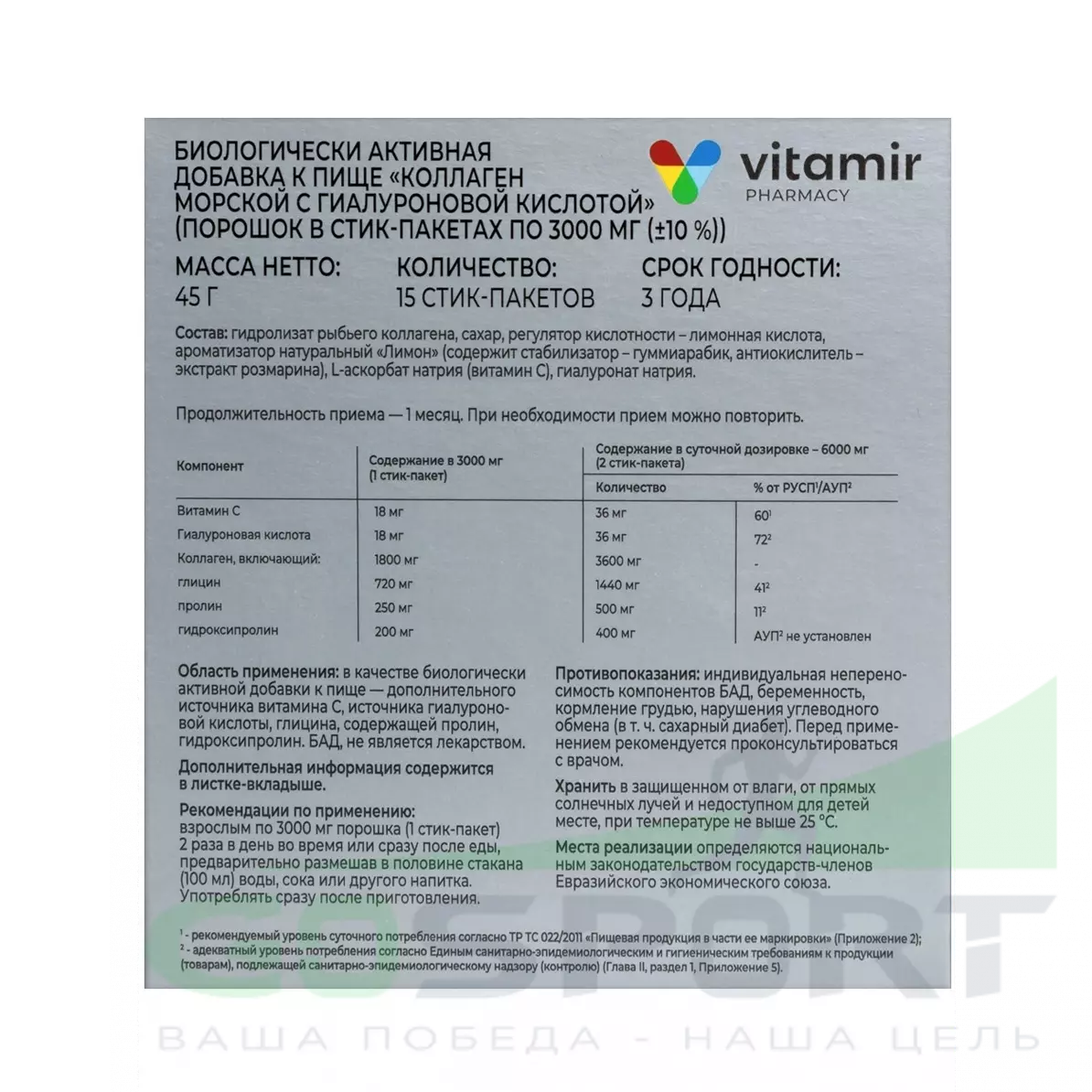 ВИТАМИР Коллаген морской с гиалуроновой кислотой 15 пакетиков, Лимон — Улучшение кожи, волос, ногтей, укрепление суставов