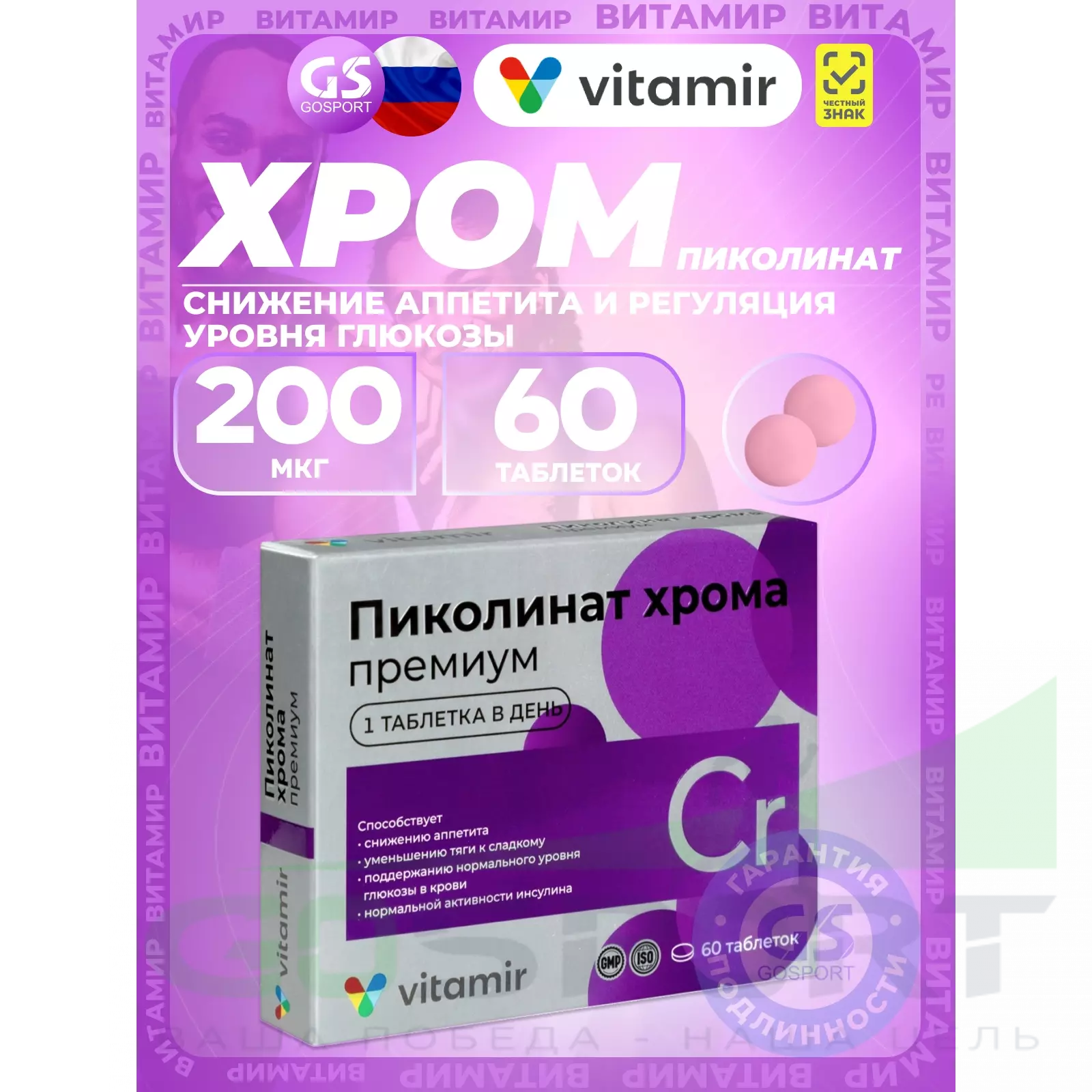 Описание ВИТАМИР Пиколинат хрома 200 мкг