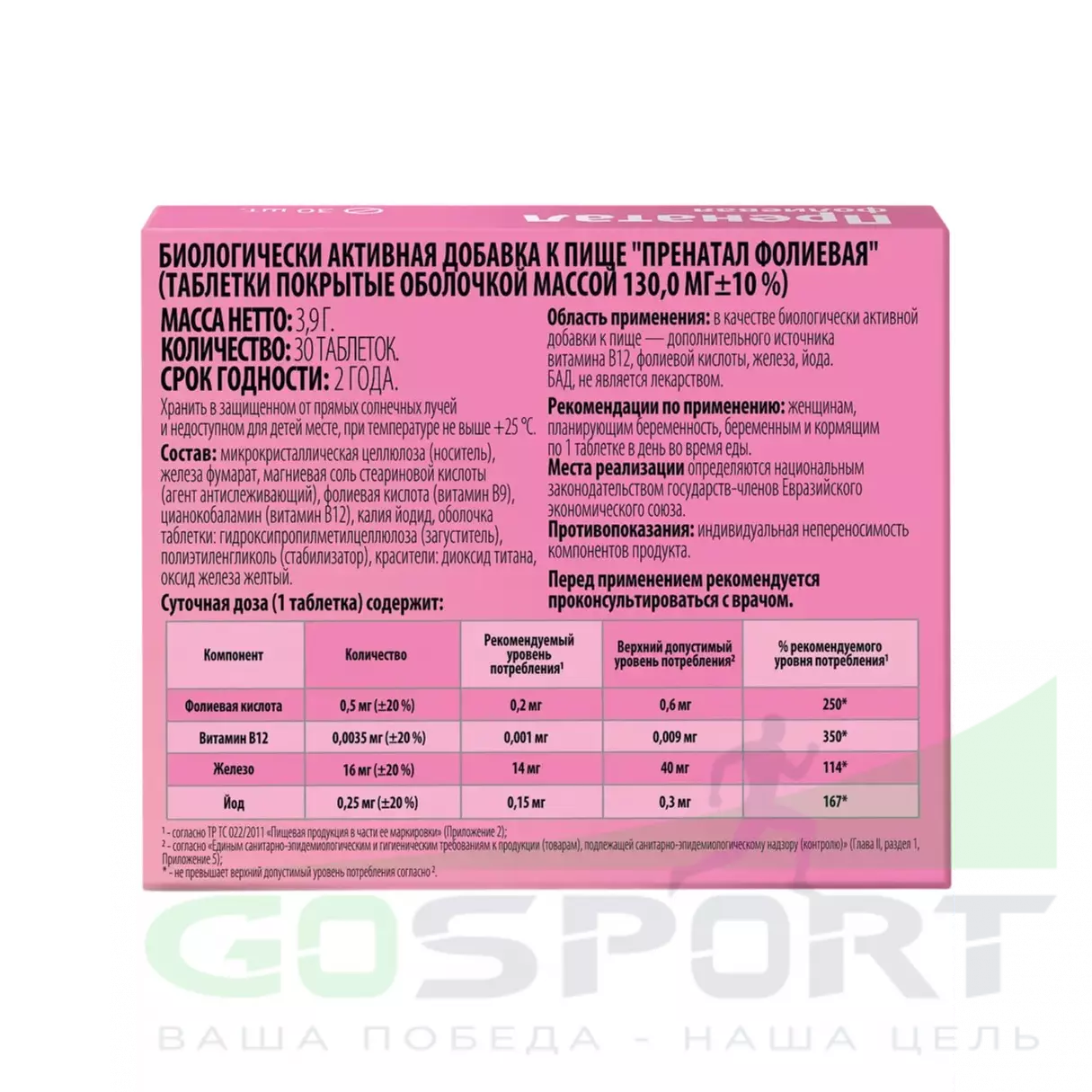 ВИТАМИР Пренатал фолиевая 30 таблеток — Для женщин планирующих беременность