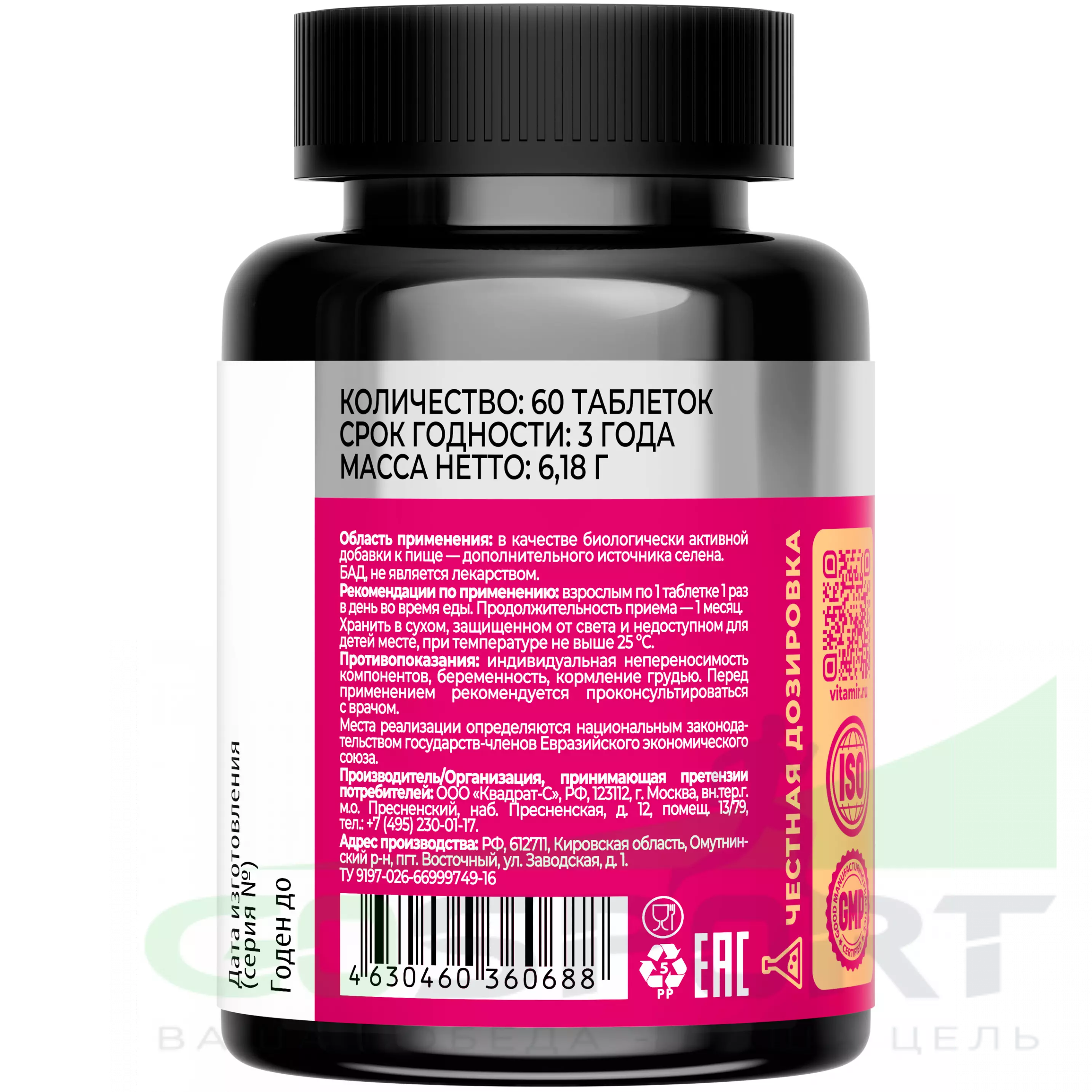 Селен — один из жизненно необходимых для человека ультрамикроэлементов. В составе биологически активной добавки селен содержится в виде селенометионина — легкоусвояемой органической формы. В организме селен выполняет множество функций, входит в многих ферментов.