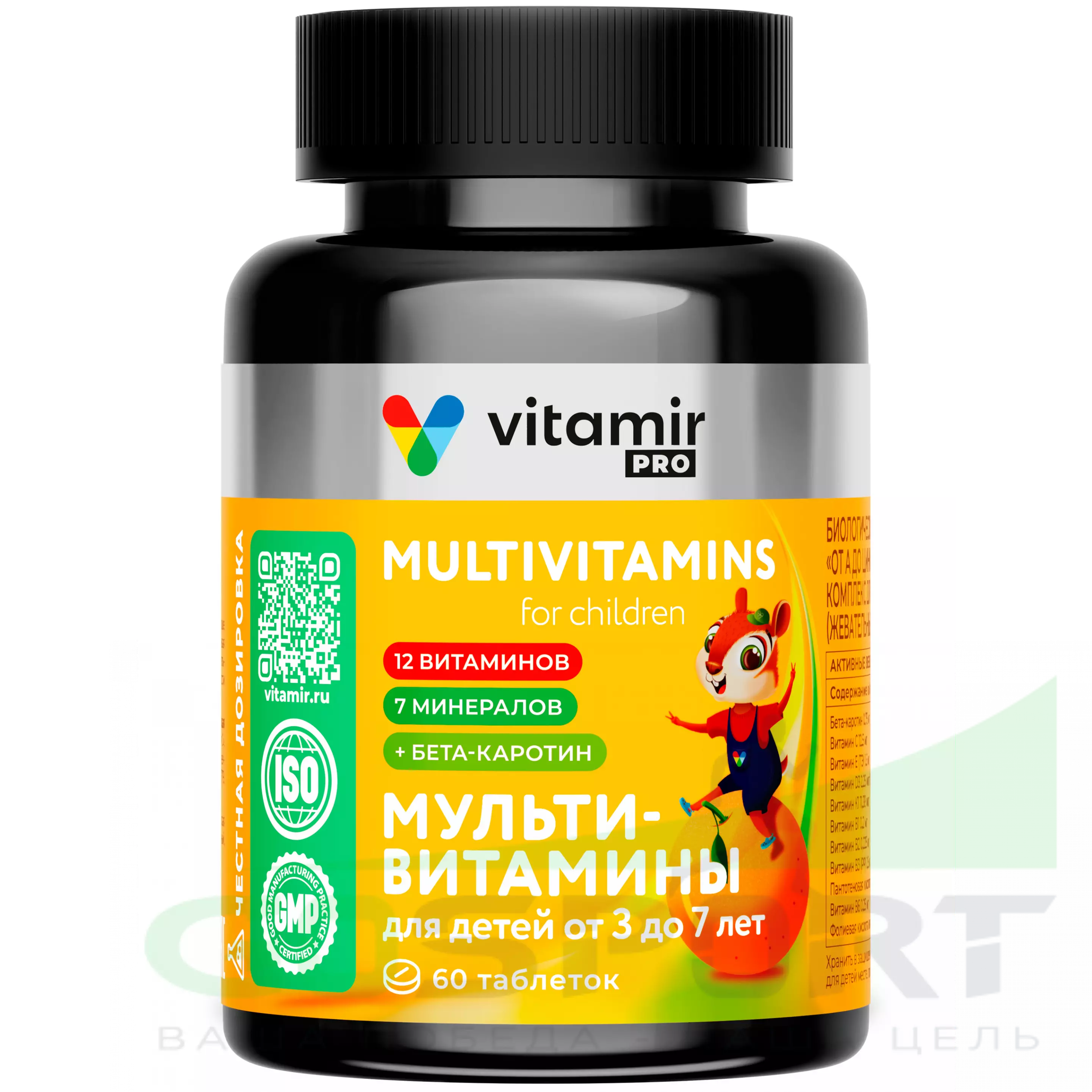 VITAMIR PRO Мультивитамины для детей от 3 до 7 лет 60 жевательных таблеток, Апельсин — Здоровый рост и развитие, укрепление иммунитета