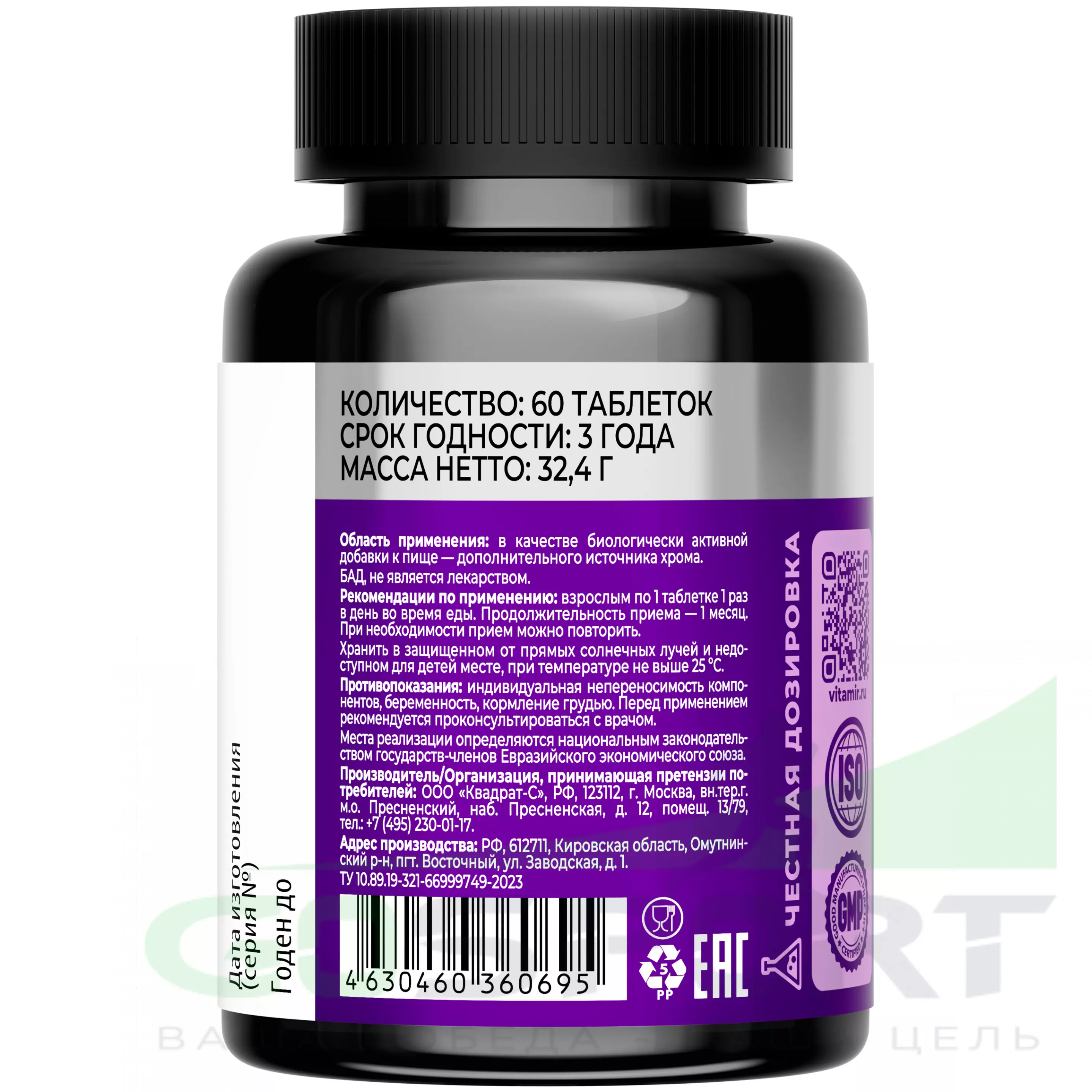 Описание VITAMIR PRO Пиколинат хрома 250 мкг