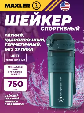 1 280 q 1 280 q 000 Шейкер 700 мл Shaker Bottle Sport Edition 750 мл, Темно-зеленый MAXLER (USA) В корзину Артикул 56865