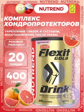 4 332 q 4 332 q 000 Комплекс хондропротекторов Flexit Gold Drink 400 г, Розовый грейпфрут NUTREND В корзину Артикул 57233