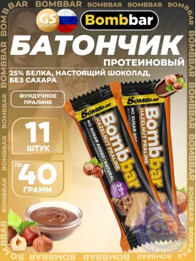 -25% 1 071 q 1 429 q 1 429 q 000 Протеиновый батончик Батончики в шоколаде без сахара 11 x 40 г, Фундучное пралине BombBar В корзину Артикул 54553