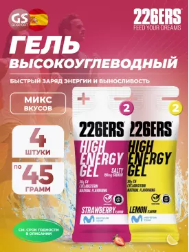 226ERS High Fructose Gel 250 mg 4 x 80 г, Клубника — Заряд энергии и выносливость