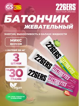 226ERS Gummy bar + sodium 125 mg 4 x 30 г, Микс 4 — Энергия и выносливость