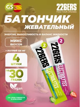 226ERS Gummy bar + sodium 125 mg 4 x 30 г, Микс 6 — Энергия и выносливость
