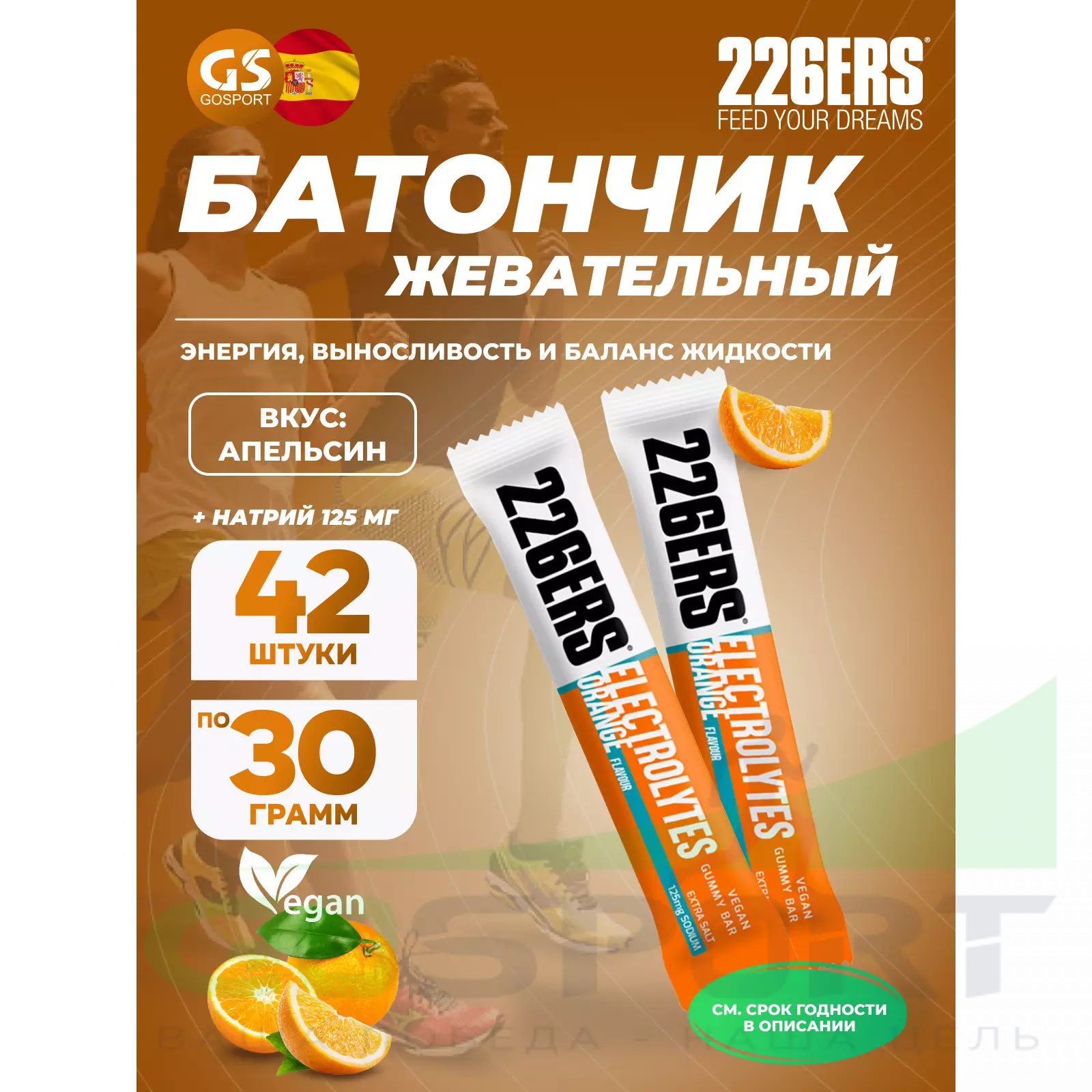Gummy bar + sodium 125 mg 42 x 30 г, Апельсин