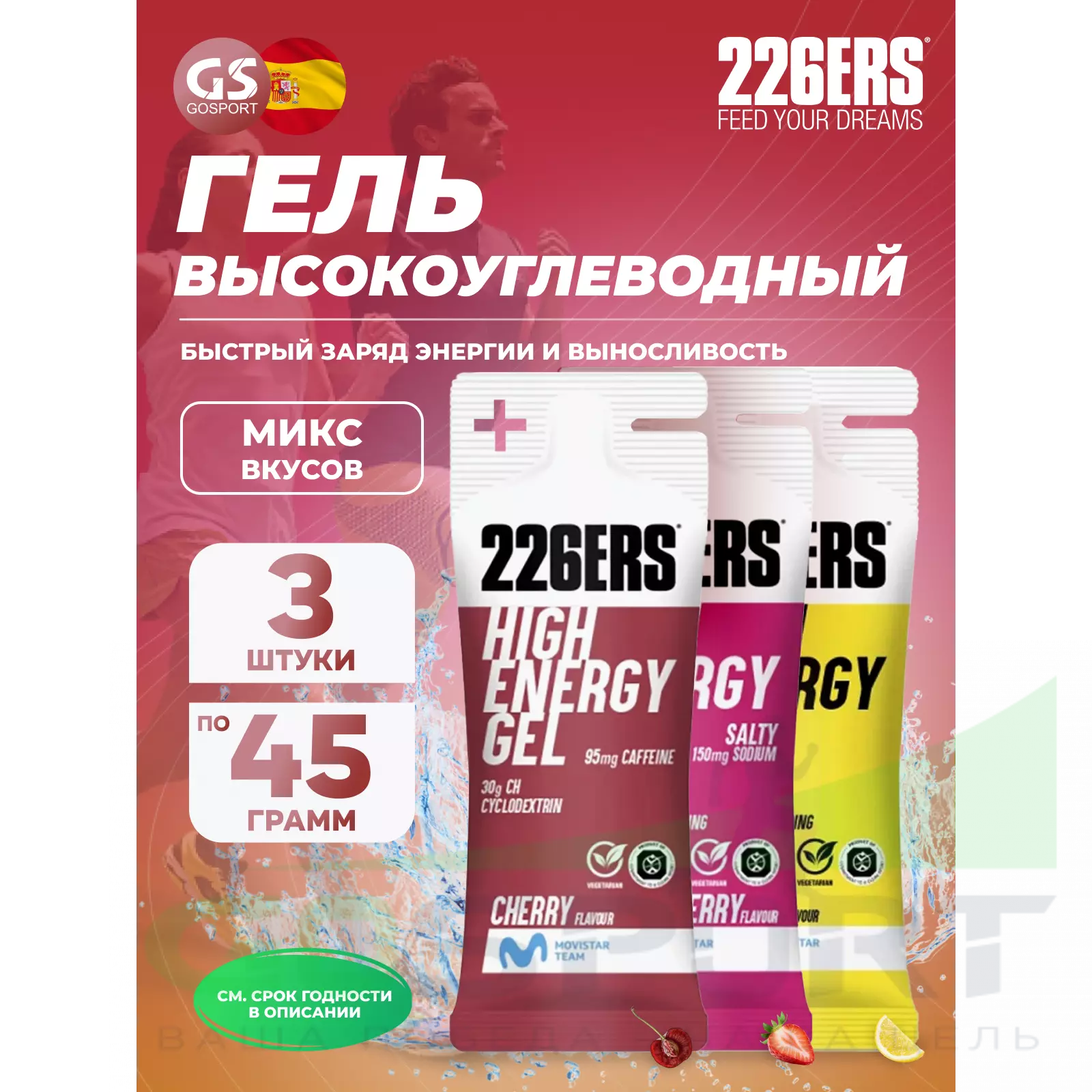 226ERS High Energy Gel + sodium 150 mg 3 x 45 г, Микс 1 — Быстрый заряд энергии и выносливость