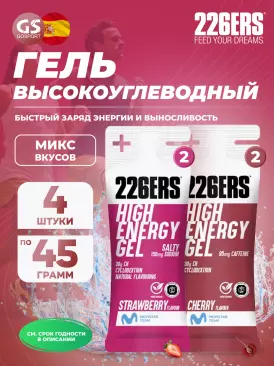 226ERS High Energy Gel + caffeine 95 mg 3 x 44 г, Микс 6 — Быстрый заряд энергии и выносливость