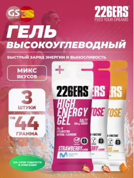 226ERS High Energy Gel + sodium 150 mg 3 x 45 г, Клубника — Быстрый заряд энергии и выносливость